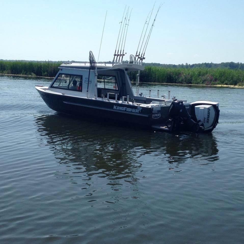 Lake Erie, Lake St Clair, and Saginaw Bay. You will fish aboard a 2016 Kingfisher 24’ Hardtop Mid Coastal. It features a deep aluminum hull with a wide beam, enclosed cabin (when needed), enclosed toilet, and comfortable seating to make for a day on the bay.