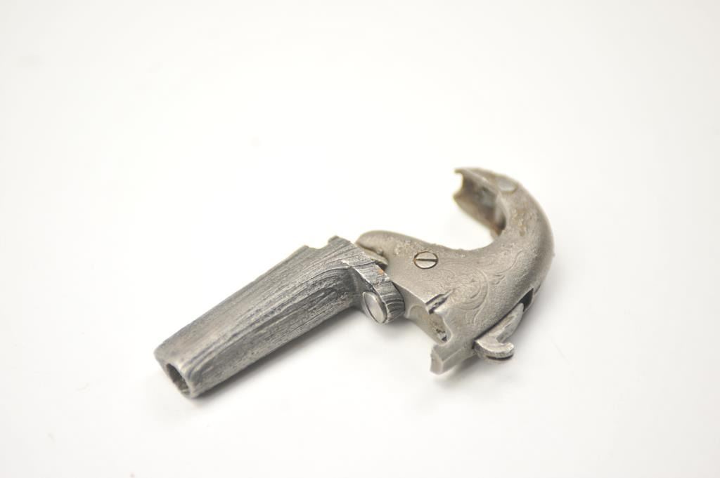 Relic Colt derringer, .41 rimfire caliber. The derringer shows cleaning, found in Deadwood in the 1940’s by tradition. Est.: $175-$350. (Antique).