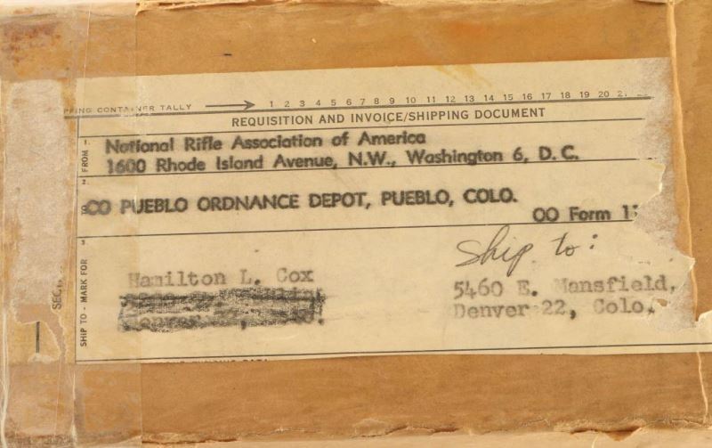 Vintage bolt action service rifle preserved in cosmoline. Standard configuration, condition is unknown. Contained inside a 1960 dated Tooele Ordnance Depot box with a shipping label from the National Rifle Association of America in Washington D.C. ***Modern Firearm***