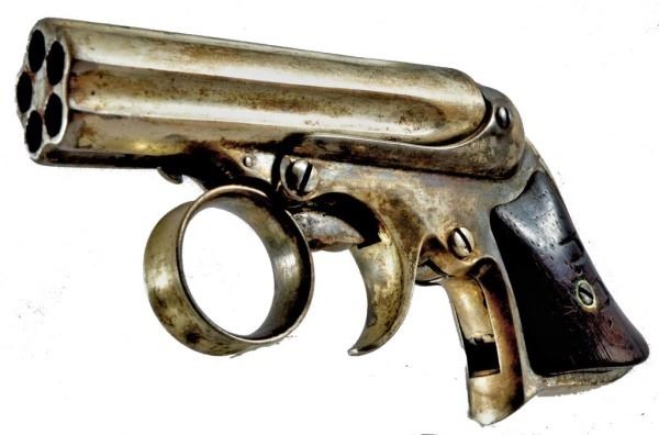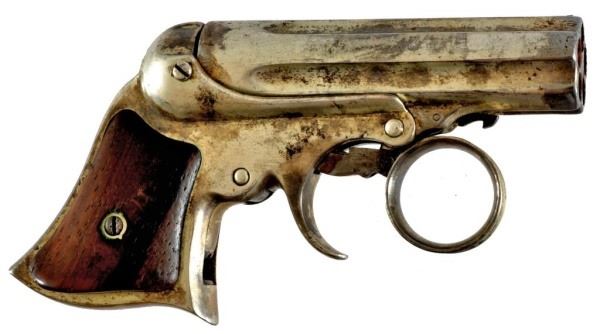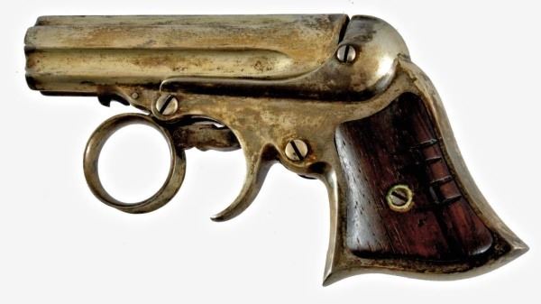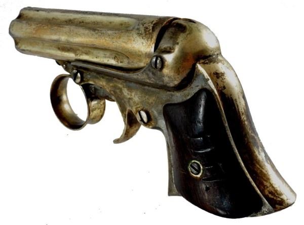 HH Carved into side of grips. Chrome plated with wear around mouth of barrel.