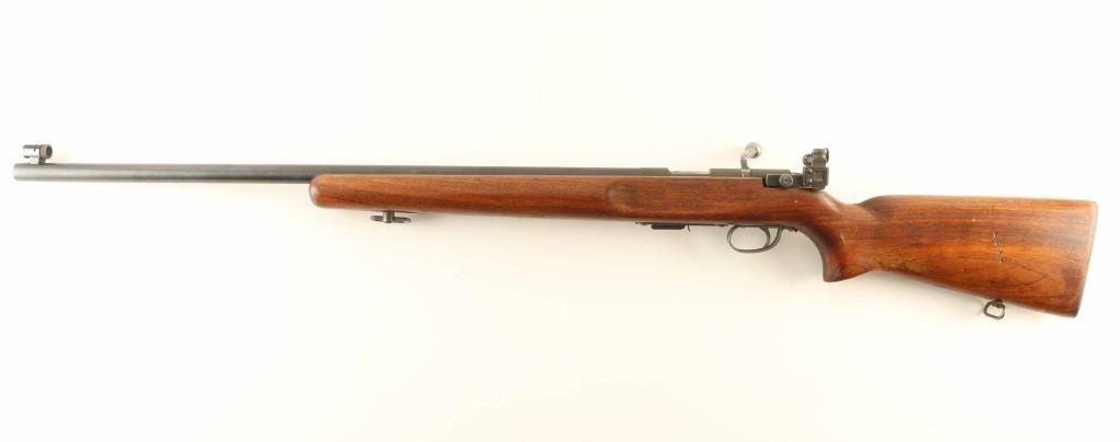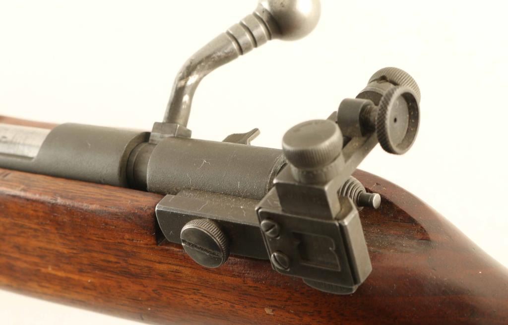 Rifle. Bolt-Action. "Matchmaster" Manufactured 1940-1968. This is a contract circa WW2 rifle to the Army for training purposes. Receiver stamped "U.S. Property". (10,000 were issued during WW2) Also used by ROTC, and DCM clubs. 27" round barrel, with globe front, and Redfield 75 rear peep sights. Blued barrel, and Military parkerized receiver. Hardwood, pistol-grip stock, checkered steel butt plate, and sling swivels. Stock stamped on the left side with "LEAD". Bore appears excellent/bright. Action is smooth/tight. Wood is very good, with a few minor scratches. Come3s with a Remington 6-rd magazine. NRA Condition-Very Good. C&R firearm.