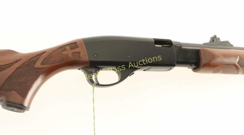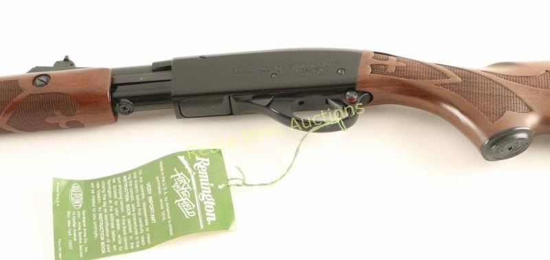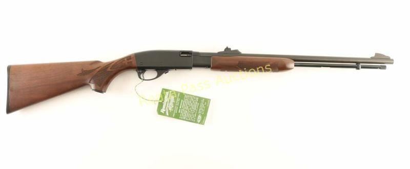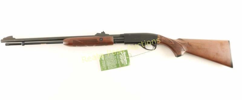 'Fieldmaster' Tube-fed slide-action repeating rifle chambered in .22 Short, Long or Long Rifle. Features a blued/black finish, 21.25" barrel, full length tube magazine, large blade front sight, adjustable sliding rear sight, integral scope rail on the receiver, push button safety, beveled trigger, press checkered walnut slide handle and pistol grip shoulder stock with black factory grip cap & buttplate. Includes the factory hang tag. Rifle exhibits little to no visible wear. Action is crisp, ore is pristine and wood stocks are fine. Condition is near new. ***Modern Firearm***