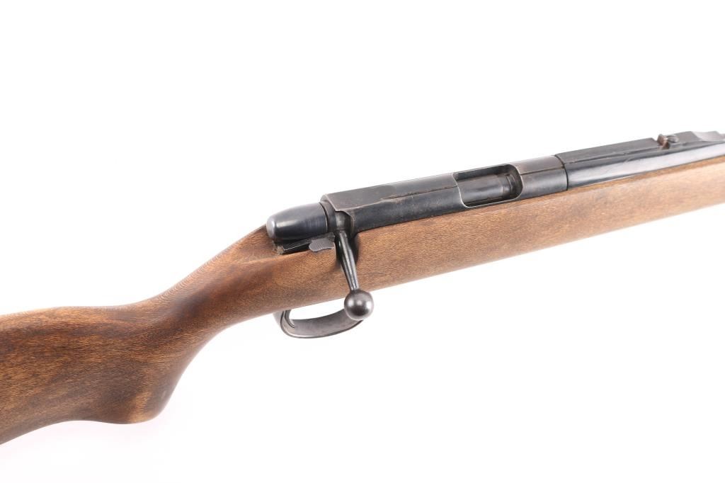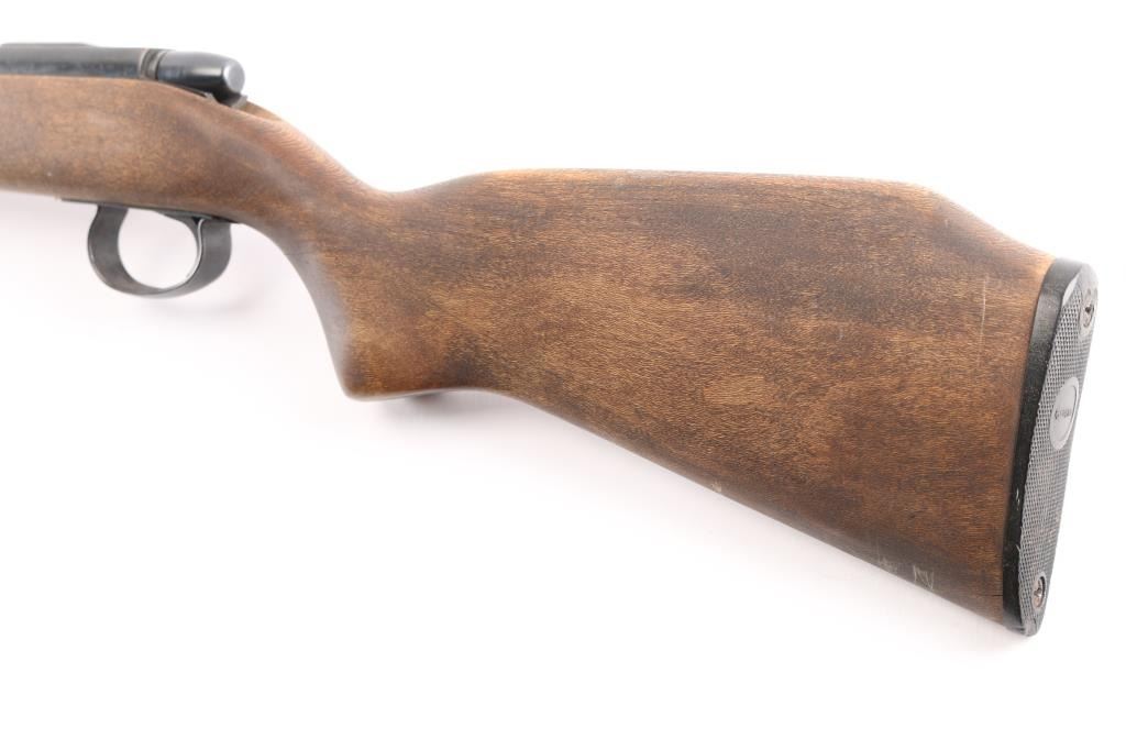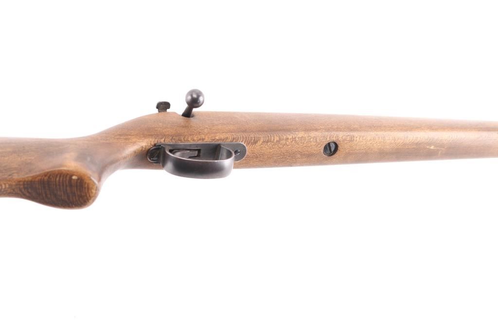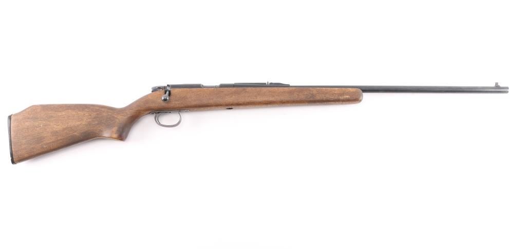 Single shot bolt action rifle manufactured 1974. 24" barrel, blade/bead front sight, rear sight removed, receiver slotted for optics, thumb safety. Bore is excellent/bright, action is smooth, stock is very good, blue is about 90% with minor scratches/rubs, edge wear.NRQA Condition-Very Good. Modern Firearm.