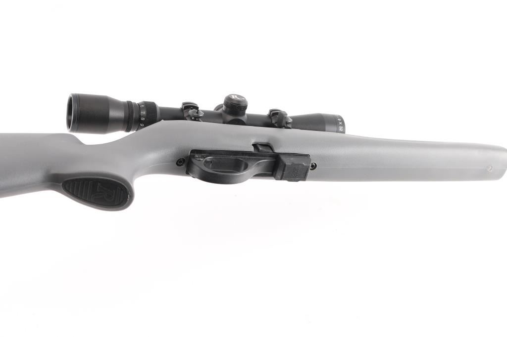 Magazine fed semi-automatic rimfire rifle chambered in .22 Long Rifle, manufactured in Mayfield, KY circa 1987. Features a matte black finish, 20" heavy barrel without provisions for sights, smooth trigger, polymer trigger guard with cross-bolt safety, detachable 10 round magazine, and green synthetic semi-pistol grip shoulder stock with contoured forend, factory buttplate & 14” LOP. Mounted with a Redfield 3-9X32 scope, clear optics. Rifle retains approximately 99% of its original finish. Action is smooth, the bore is pristine and the synthetic stock is fine. Like new. Comes with original factory box with manual.