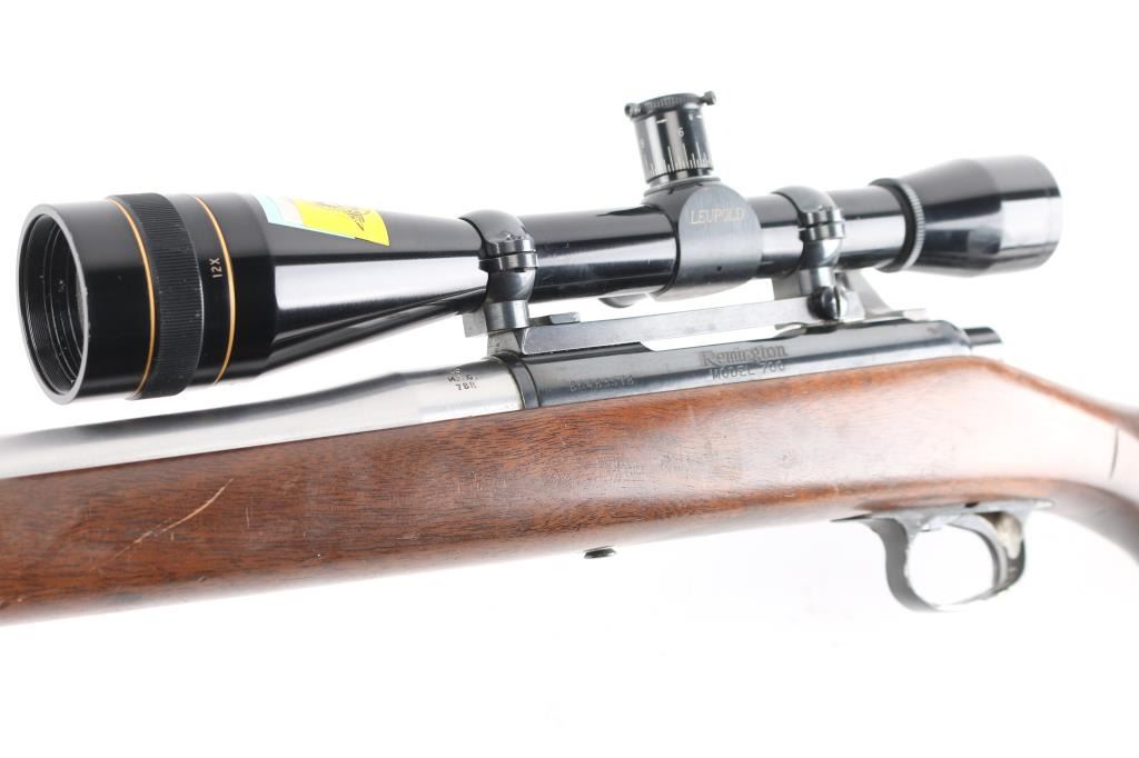 Custom target rifle built on a Remington 700 action, Chambered in 7mm BR. 7mm Benchrest Remington, is a rifle cartridge developed by Remington for the Metallic silhouette shooting sport: 24" stainless steel barrel with integral non-ported muzzle break, recessed crown, barrel is marked "M.A.C. 7BR under clover leaf. Wood stock with right handed palm swell, cheek piece and high comb. Blued action, jeweled bolt. Mounted with a Leupold 12x scope with fine crosshair reticle. Scope has 3 NRA National Silhouette Championships stickers dated 2007, 2009. The buttstock has a label with data on the different silhouette targets. bore is excellent/bright, action is smooth, stock is sound with many minor scratches/dings, metal finish is very good. One triggerguard screw is missing.