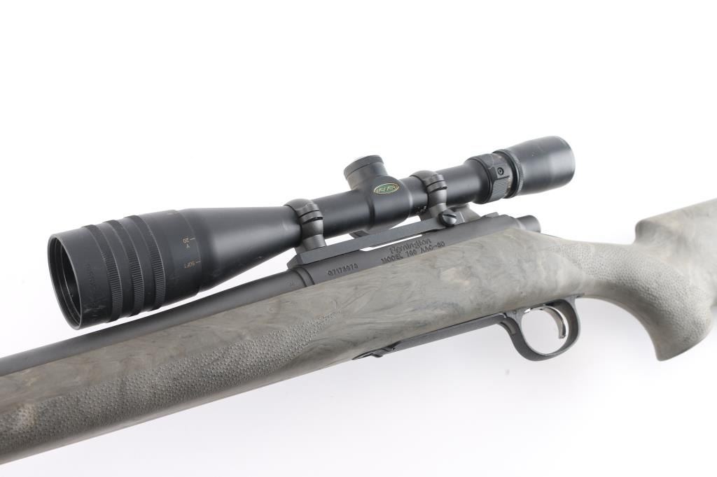 Bolt-action rifle, featuring a 22 3/8" heavy barrel with muzzle break, 1:10" twist rate, 5/8-24 threaded muzzle for attaching suppressors and other devices, mounted Weaver 4-16 X 42 scope. Utilizes a short action and comes with a Hogue overmolded Ghillie Green stock, X-Mark Pro smooth curved trigger, adjustable to a 3.5-pound pull weight. Bore is pristine with strong rifling, action is smooth. Retains approx. 98% matte black finish with small scratches at muzzle, stock is excellent with little to no wear. Scope is clear. Comes with factory box. NRA Condition is excellent.***Modern Firearm***