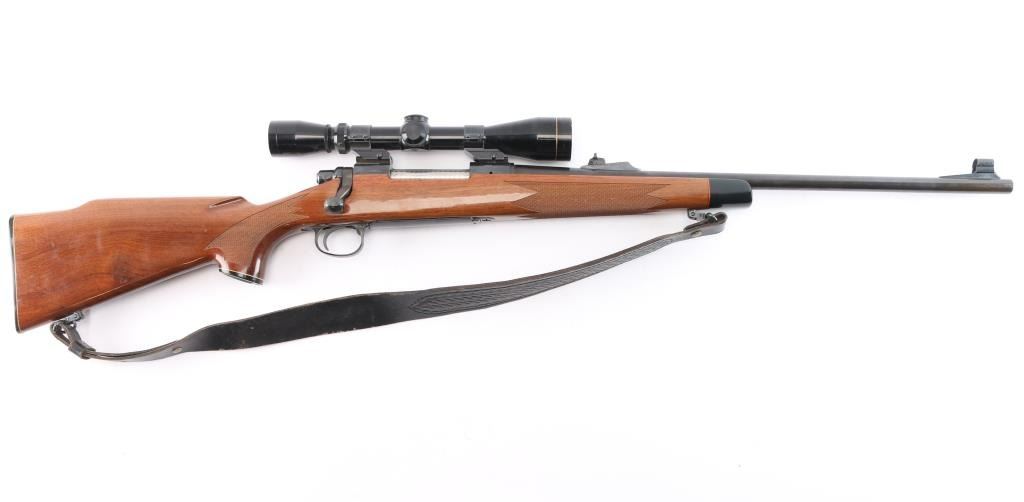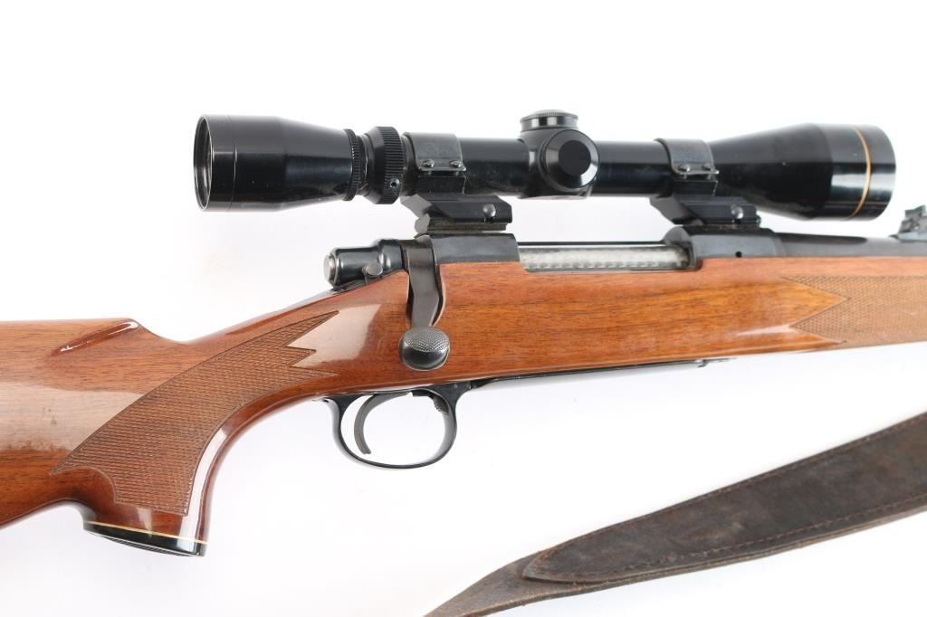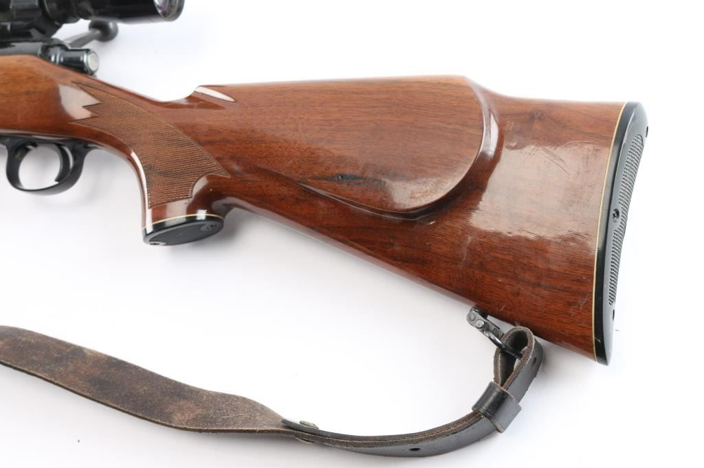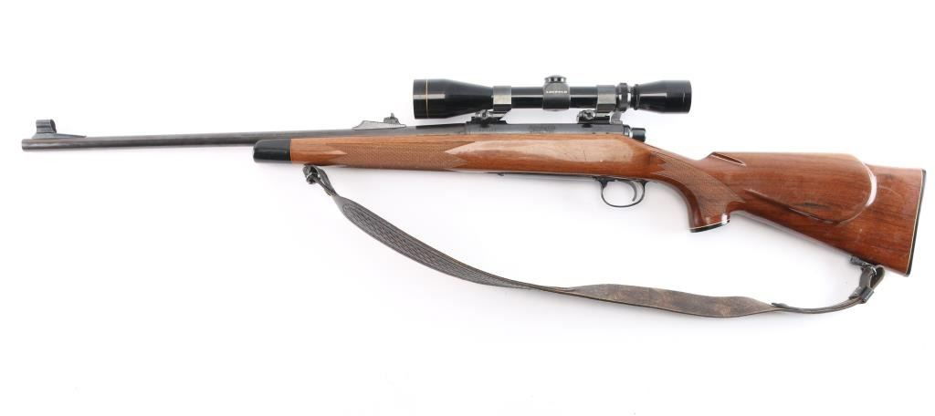 BDL bolt action sporting rifle. Circa 1968-75. Features blued finish, wood stock with impressed checkering at wrist & forend, right hand cheek piece, black checkered factory butt plate, 22" tapered barrel, hooded factory blade/bead serrated ramp front & adjustable rear sights, jeweled bolt, manual safety, serrated curved trigger, black forend and grip caps. Mounted Leupold VX-1 3-9X40mm scope with a duplex reticle. Bore is good/slightly dirty. Retains approx. 95% finish with some discoloration at the end of the barrel and some handling marks. Wood is good with scratches on the left side of the stock and the scope is clear. NRA condition is good++. ***C&R Firearm***.
