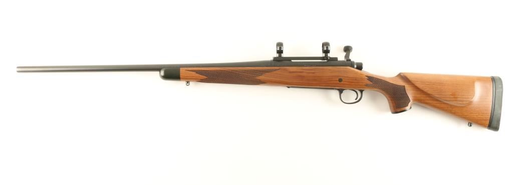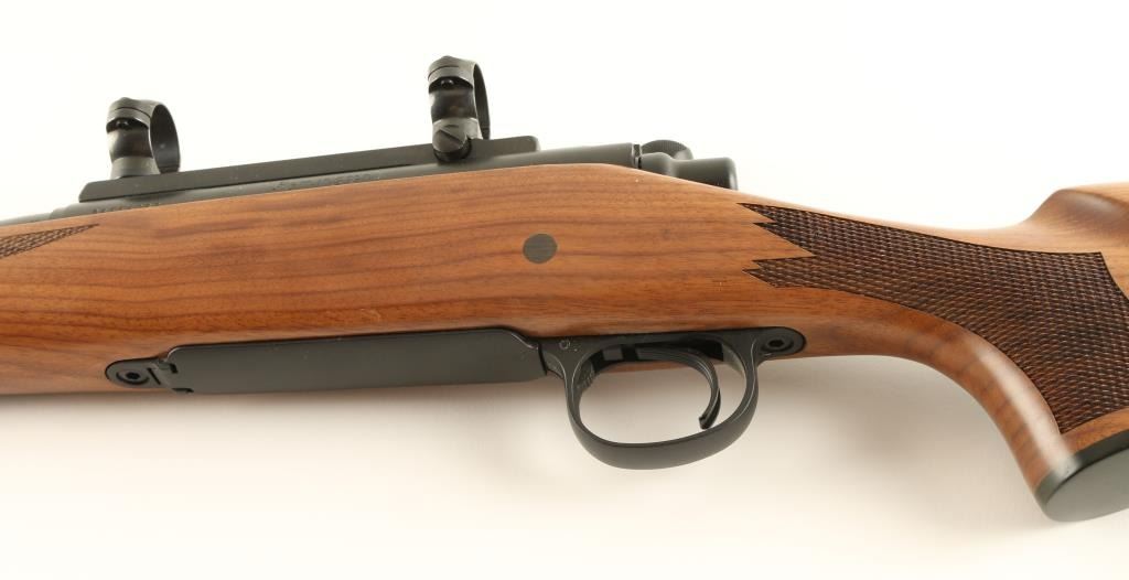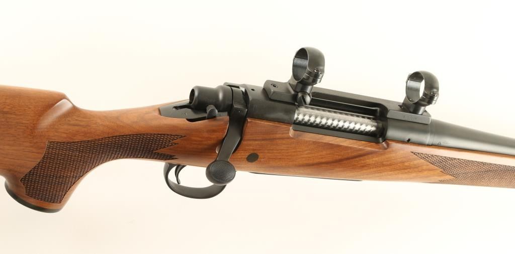 Finely crafted bolt action sporting rifle chambered in .35 Whelen. Features a matte blued finish, 24" hammer forged barrel, no sights, installed scope base with rings, adjustable X-Mark Pro trigger system, jeweled bolt, manual safety, swivel studs, internal magazine with hinged floor plate and American walnut Monte Carlo style stock with fancy checkering, black forend cap & rubber recoil pad. Includes the original factory cardboard box with lock & manual. Rifle shows no signs of use or wear. Action is smooth and bore is pristine and wood stock is extra fine. Said to be unfired by the consignor. Condition is as new in box. ***Modern Firearm***