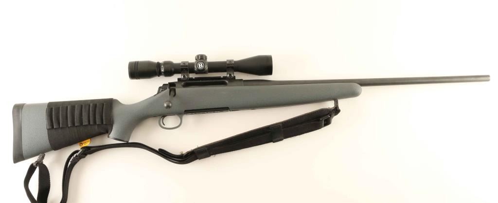 Economic American made bolt action sporting rifle chambered in 7mm Remington Mangum, manufactured circa 2001-2006. Features a matte black finish, 22" tapered barrel without provisions for sights, Bushnell 3-9x 40mm scope, detachable 3 round magazine, serrated trigger, manual safety on the right side of the receiver, padded black nylon sling with quick detach swivels and textured grey synthetic pistol grip shoulder stock with right handed cheek rest, integral trigger guard, slip-on cartridge carrier and rubber recoil pad. Rifle exhibits approximately 97% of it's original finish showing scattered light wear. Action is sound, the bore is excellent, optics are clear and the synthetic stock is fine. Condition is near NRA Excellent. ***Modern Firearm***