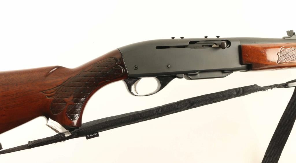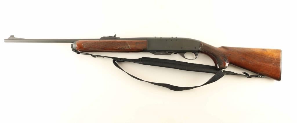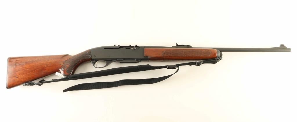 Semiautomatic rifle features matte dark gray finish (appears refinished - matte blued or parkerized), wood butt & forend with impressed checkering, 22" barrel, blade front sight, adjustable rear sight, manual safety, sling swivels, receiver drilled & tapped on top & left side (filler screws in holes). Bore is very good condition. Metal retains 95% coverage of refinish, some discoloration to right side of receiver, bare metal on sharp edges. Some dents or old pitting under finish visible at muzzle. Wood is good to very good condition, appears lightly sanded & refinished with some smoothing of checkering pattern, scuffs & dents in several places. Includes (1) magazine, black nylon sling. Condition is NRA Good+ as refinished *** Modern Firearm ***