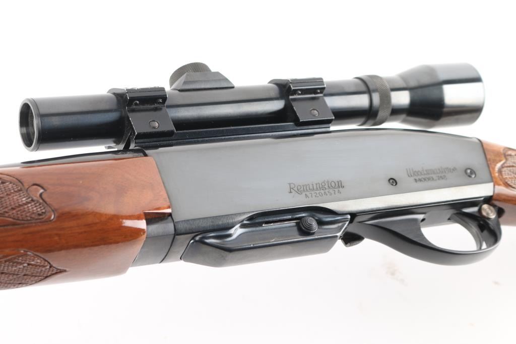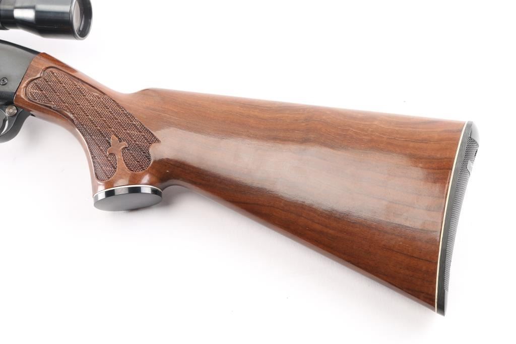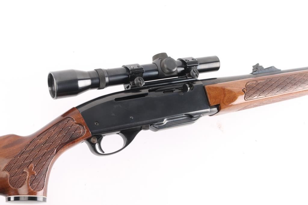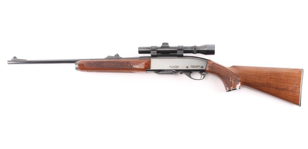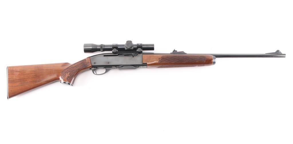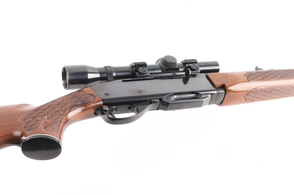 Semiautomatic rifle manufactured circa 2014. Features 22" barrel, ramp front sight with beaded blade, adjustable rear sight, manual safety, blued finish, wood stock with impressed checkering at wrist & forend, factory buttplate and grip cap with white spacers. Mounts a good condition Weaver K2.5-1 Rifle Scope, fine crosshair, clear view. Bore is excellent/bright. Retains 99% blued finish. Wood is nearly perfect with few minor scratches. One magazine. NRA Condition-Excellent. Modern Firearm.