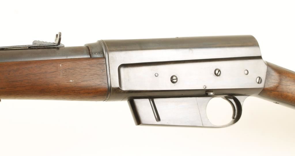 Remington rifle blued finish turning to brown with a 21" barrel, wood stock and forend which has a hairline crack. Condition overall fair to good shows age and use. *Modern Firearm*