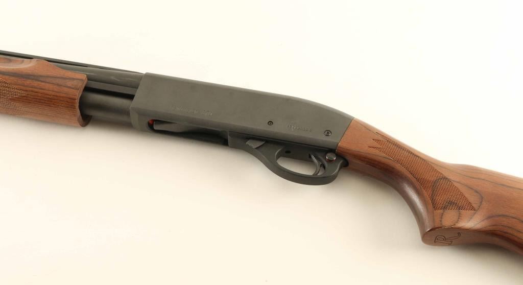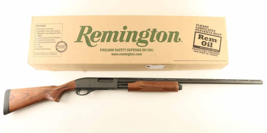 Pump Action shotgun accepts 3" or shorter shells. Features 27.5" vent rib barrel, SKT choke tube installed, steel front bead, manual safety, matte blued finish, low sheen finished wood butt & forend, checkering panels at wrist and forend, solid rubber recoil pad. Bore is excellent condition. Metal retains 95% finish with signs of handling and use, scuffs on barrel where pump handle rubs. Wood is very good condition. Includes factory cardboard box & manual. Condition is NRA Very Good+ *** Modern Firearm ***