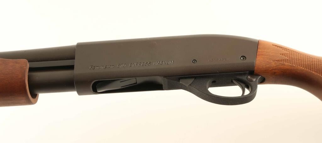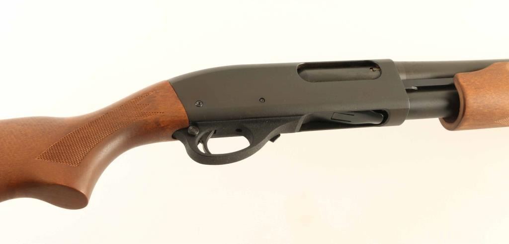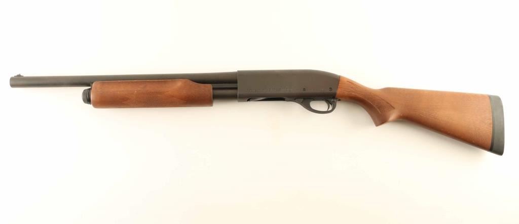 SN: A319401M Pump action shotgun features matte blue finish, non-reflective wood stock with checkered panels at wrist and pump handle, 18" barrel, pewter color front bead, magazine tube under barrel, manual safety, solid rubber butt pad. Bore is very good to excellent condition. Metal retains 90% finish with scrapes and scuffs to barrel and receiver, light patina forming on receiver right side. Wood is in excellent condition. Condition is NRA Good++ *** Modern Firearm ***