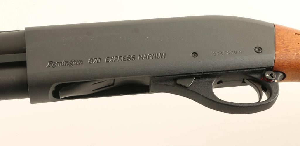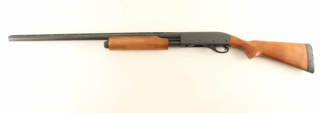 SN: C715830M Pump Action shotgun accepts 3" or shorter shells. Features 27.5" vent rib barrel, MOD choke tube installed, steel front bead, manual safety, matte blued finish, low sheen finished wood butt & forend, checkering panels at wrist and forend, solid rubber recoil pad. Bore is excellent condition. Metal retains 98% finish with few signs of handling and use. Wood is excellent condition. Condition is NRA Excellent *** Modern Firearm ***