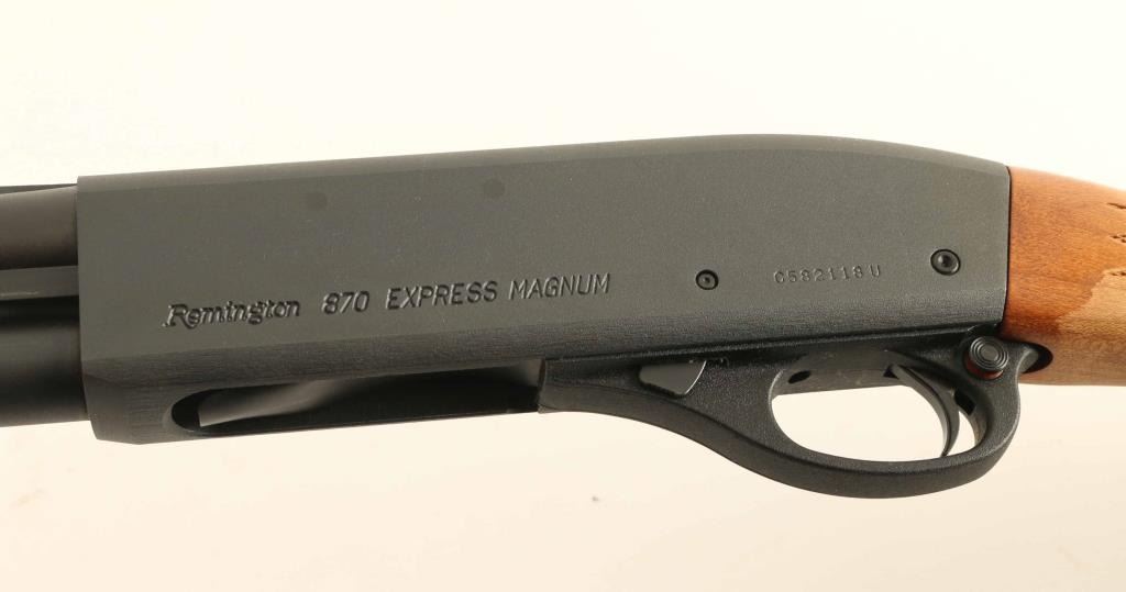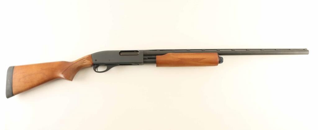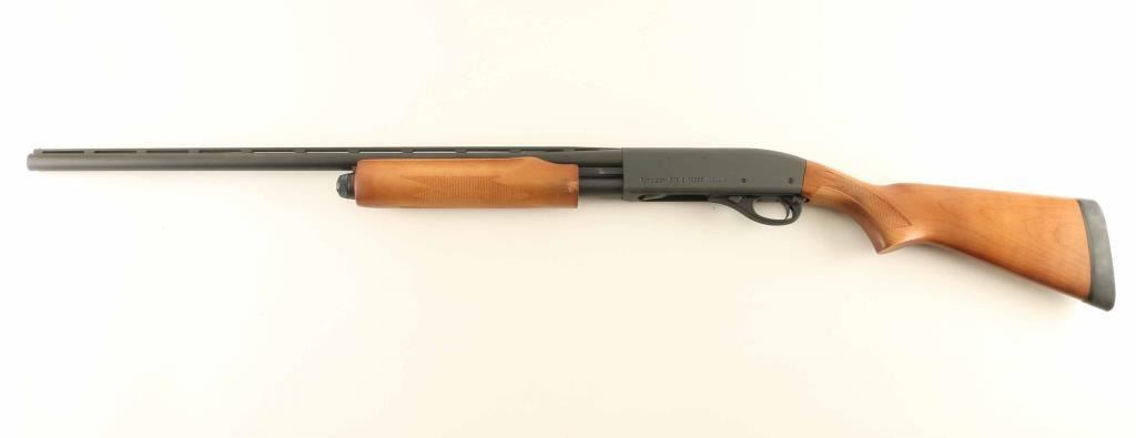 SN: C582118U Pump Action shotgun accepts 3" or shorter shells. Features 25.5" vent rib barrel, MOD choke tube installed, steel front bead, manual safety, matte blued finish, low sheen finished wood butt & forend, checkering panels at wrist and forend, solid rubber recoil pad. Bore is excellent condition. Metal retains 95% finish with few signs of handling and use. Wood is very good condition with areas of dryness that appear due to solvent application or tape. Condition is NRA Very Good+ *** Modern Firearm ***
