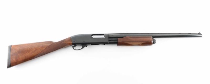 Pump Action shotgun accepts 2-3/4" & 3" shells. Features 21" vent rib barrel with fixed MOD choke, Bradley front bead (plastic bead missing, cavity filled with orange paint), steel mid bead, chrome plated bolt, manual safety, blued finish, checkering panels at wrist and forend, fancy figuered walnut straight wrist stock, solid rubber recoil pad. Bore is very good condition. Metal retains 90% bluing with scratches, bare metal where action parts rub. Barrel appears possibly re-blued, with partial erosion of some letter on markings. Receiver markings are crisp with sharp edges to letters. Wood is very good condition with handling marks, few scratches & dings. Condition is NRA Excellent (possible reblued barrel) *** Modern Firearm ***