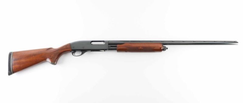 Pump action "Light Weight" shotgun with blued finish, fleur-de-lis checkered walnut stock with rubber butt pad, and matching checkered forend. The wood is in great shape with only a couple of very small marks or dings from use. 28" vent rib barrel with silver bead front sight. 20 ga, 2 3/4" or shorter shells. The metal is in great shape with no loss of bluing and one spot on the barrel where something scratched it. Good bore and action. NRA Very Good Modern Firearm