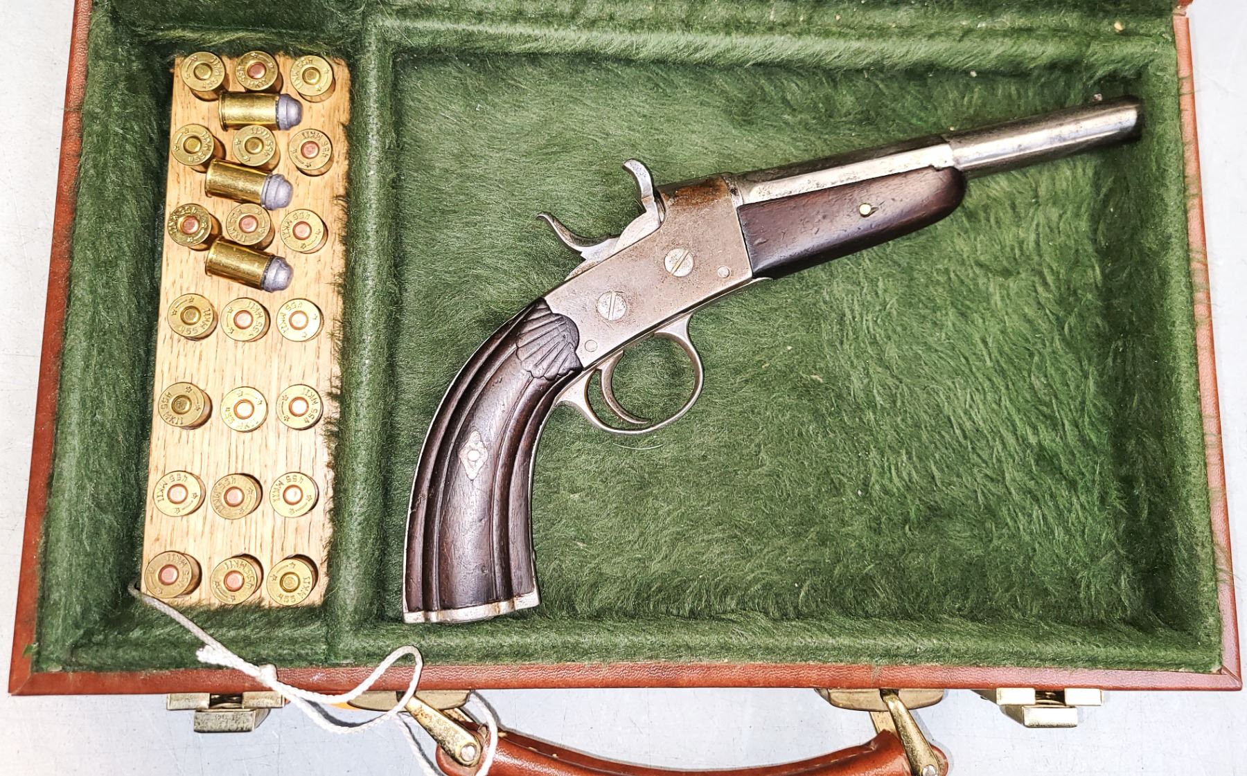 Belguim Copy of Remington Rolling Block Pistol c/w Ammo & Dies ANTIQUE