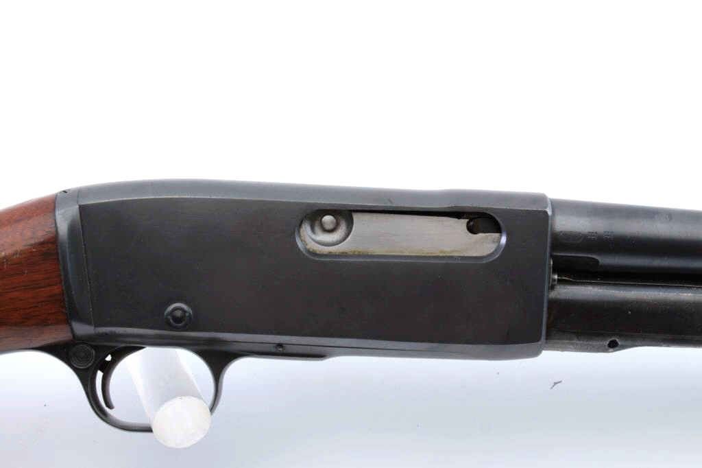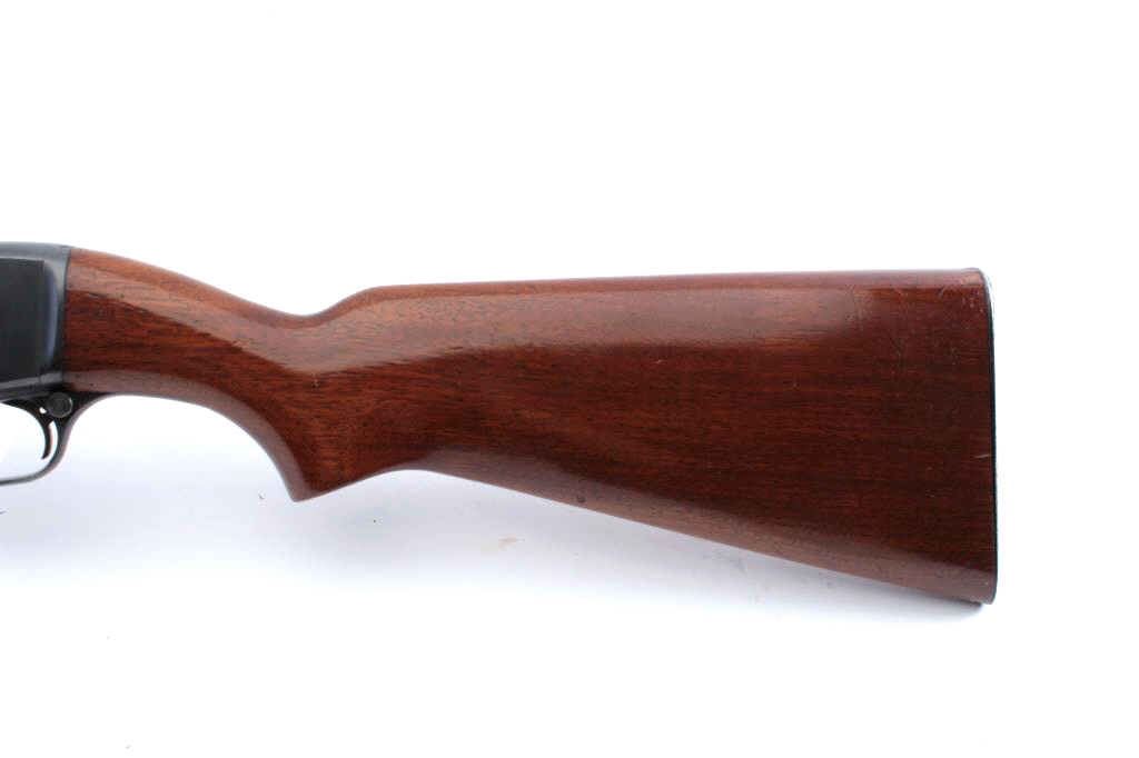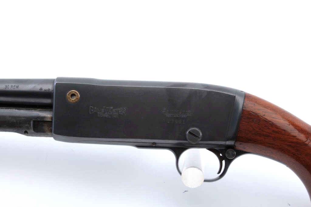 Remington Game Master Model 141 pump rifle, .30 Remington caliber, Serial #47591. The rifle is in excellent overall condition with a 24” barrel. The rifle retains nearly all the blue finish with light handling marks.The smooth wood stocks are in very good condition with small mars and compressions consistent with carry and use. The butt stock ends with a checkered steel butt plate. The bore is good, the action is crisp andthe markings are sharp. Est.: $450-$900. (C+R).