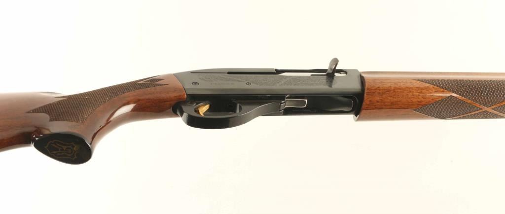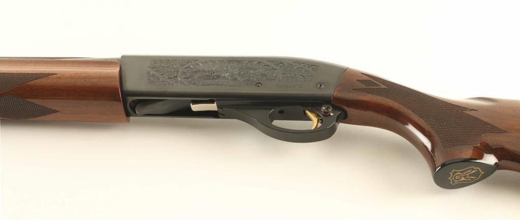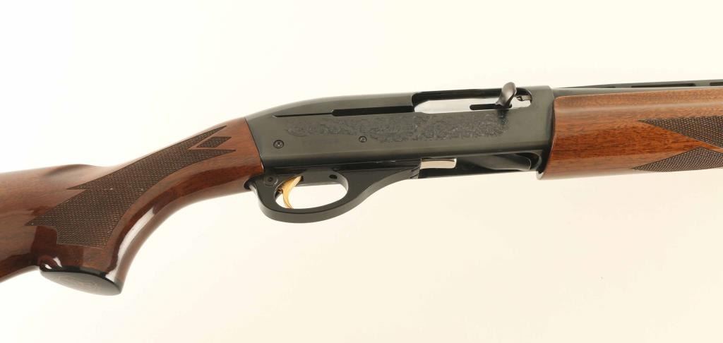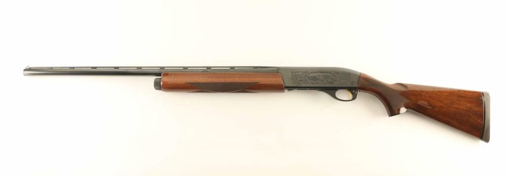 Semiautomatic shotgun features blued finish, engraved receiver, urethane finished wood forend & stock with fancy diamond pattern checkering on forend & wrist, solid rubber recoil pad, 25.5" vent rib barrel, brass front bead, steel mid bead, accepts choke tubes (MOD tube installed), manual safety. Accepts up to 3" shells. Bore is very good condition. Retains 95% blue with minor handling marks. Stock is near excellent with some shallow small dents. Condition is NRA Excellent *** Modern Firearm ***