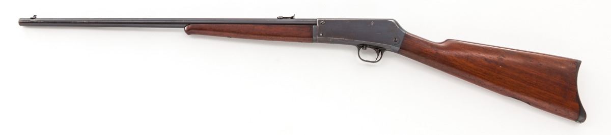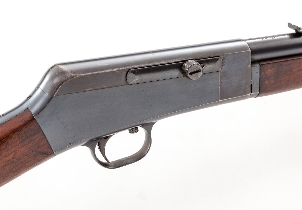 Remington Model 16 Semi-Automatic Rifle, #3045, .22 Rem. Auto cal., 22'' barrel, blue finish, walnut stock, with one box of Kleanbore Remington ammo. Condition is near fine retaining approx. 85%-90% factory blue with scratches to flat sides of frame and wear to highpoints. Stock with scuffs and pressure dings to left side, and thinning to finish at wrist and forend. Action is good, bore is bright. Est.: $600-$800. (C&R)