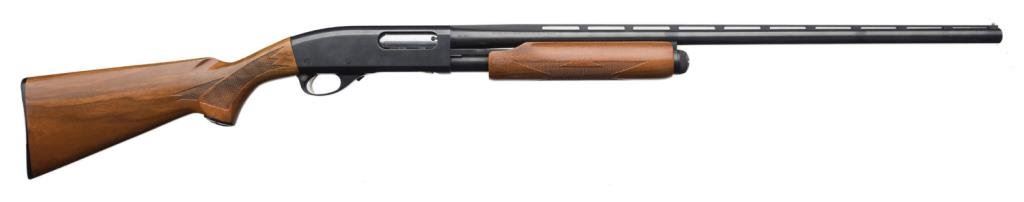 *Remington Model 1870 Wingmaster pump action shotgun, 16 gauge, 28” ventilated rib barrel, S/N 812200W; checkered wood stocks in overall fine condition. Est.: $300-$600.