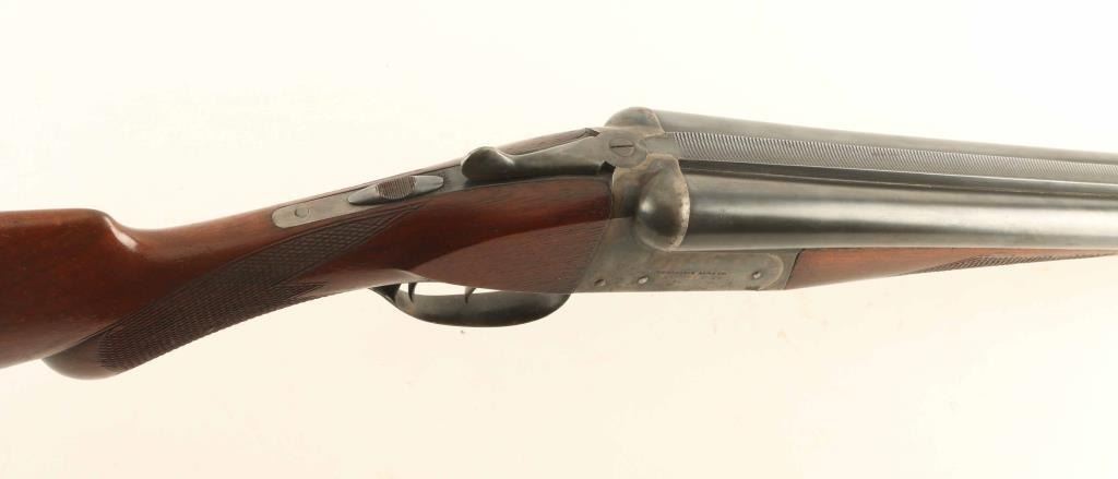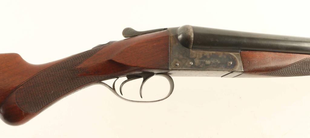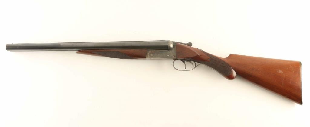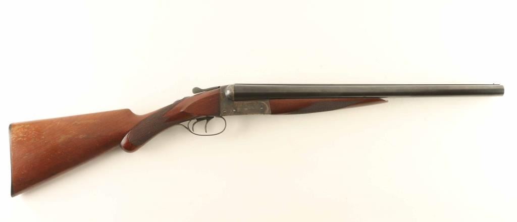 Double barreled side-by-side shotgun manufactured circa 1910. Features 18.5" blued barrels (chokes measure CYL left, IC right), color case hardened action, checkered wood forend, wood butt with checkered Prince of Wales style grip, plastic buttplate, double triggers, internal hammers, tang safety. Bores are very good condition. Metal parts retain 90% finish with scattered light patina on receiver right, general signs of use & handling. Wood is very good with some loss of finish near butt. Condition is NRA Very Good *** C&R Firearm ***