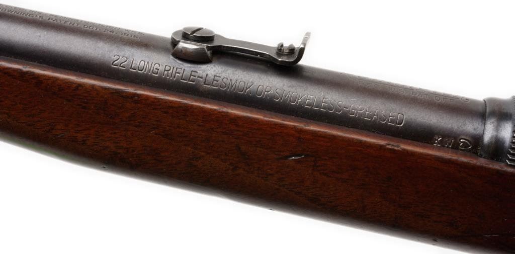 *Remington Model 24 semi-automatic rifle, .22LR caliber, 19” barrel, blued finish, wood stocks in overall very good condition; crisp action, very good bore. Est.: $350-$700.
