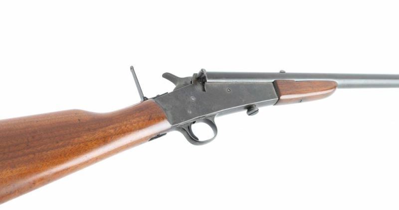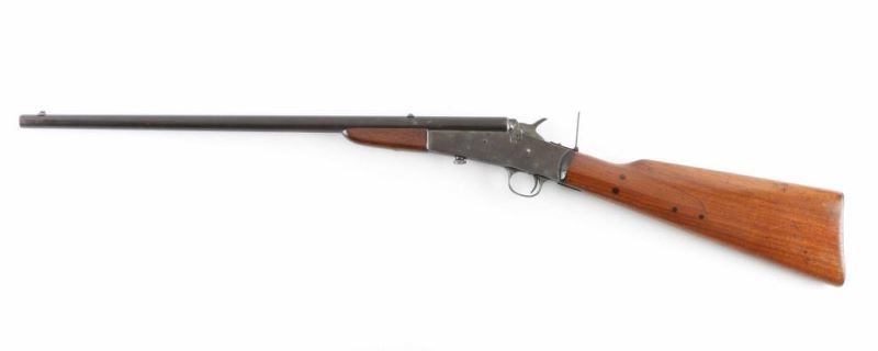 Single shot rimfire rifle. Falling block action. Take-down. Made from 1901-1933. This rifle was made before 1921 (No letter code on barrel) Blued finish, wood stock, and forearm. Smooth steel, Remington marked butt plate. 20" round barrel, with open sights. "U" notch rear sight on barrel, and rear peep folding tang sight. This was has the folding sheet metal tang sight. Bore is fair condition, pitted. Finish is about 40%, blue/gray patina. Wood is good condition, and has been re-finished. Also there is old repair on the right side of stock behind the receiver. Matching ser# is slightly visible on the stock behind the triggerguard. Condition is NRA Good++ *** C&R Firearm ***
