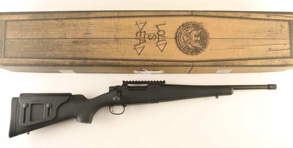 SN: 7849579 Bolt action rifle as modified by Advanced Armaments Corporation features matte black finish, black polymer stock, adjustable cheek riser, sling studs, rubber butt pad, 16" barrel with threaded muzzle and thread protector, hinged floorplate, manual safety, single piece Picatinny rail on receiver top. Bore is excellent condition. Overall appearance is like new with few signs of use or handling. Includes factory cardboard box. Condition is NRA Excellent - Like New *** Modern Firearm ***