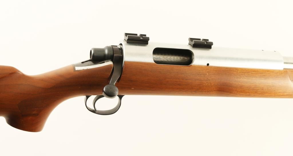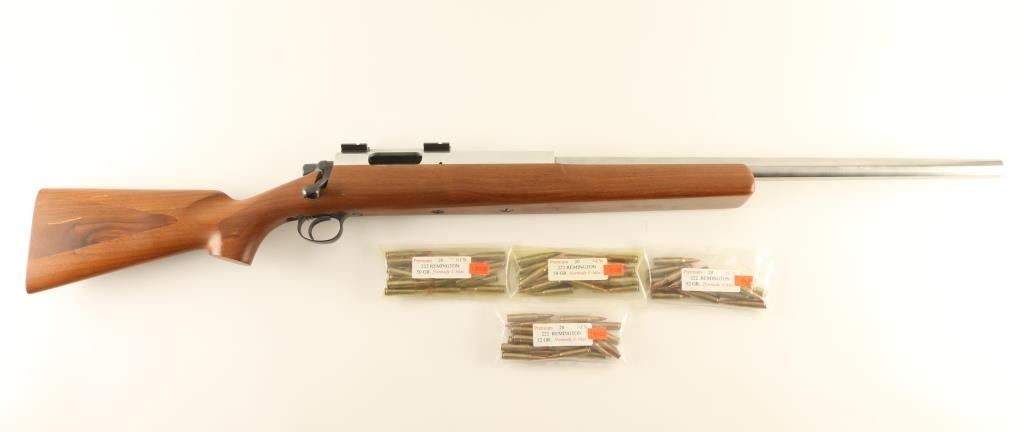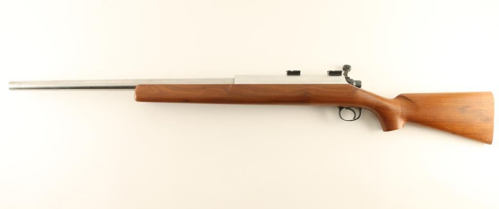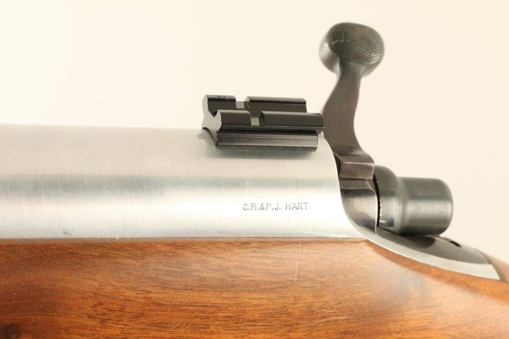 Rifle. Bolt-Action. Single shot. This is a Remington 700 customized with a R.W. Hart adjustable trigger, and C.R. & P.J. Hart action sleeve. Mounted a a benchrest stock. 25" heavy chrome barrel. Tang thumb safety removed. Scope rails mounted on sleeve. Bore is excellent. Action is crisp/tight. . Chrome barrel, and aluminum sleeve are excellent. Wood is very good, with a few minor sctraches. Rifle comes with 80 Hornady V-Max 50 gr. Ammo in .222 Rem. NRA Condition-Excellent. Modern Firearm.