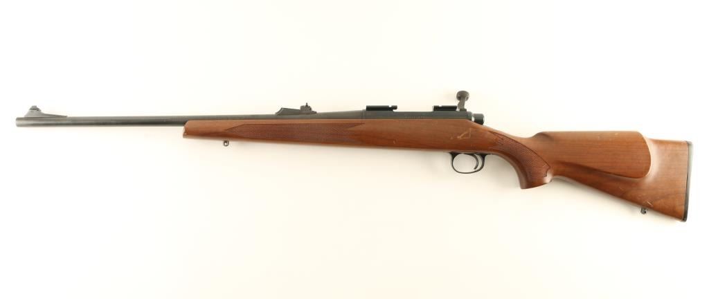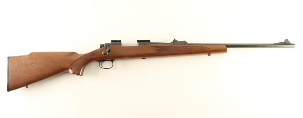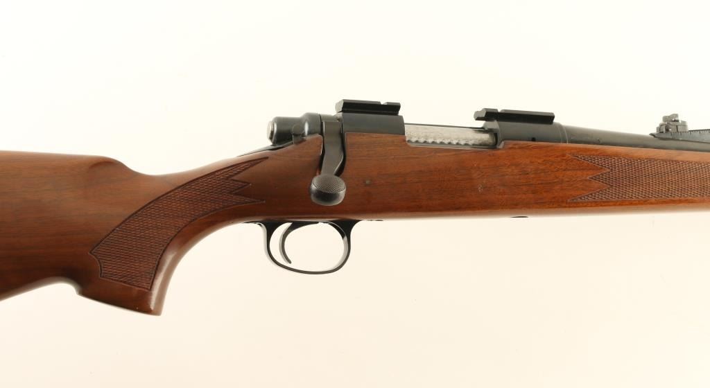 Bolt action rifle features blued finish, wood stock with checkering at forend & wrist, right handed cheekpiece, flat plastic buttplate, sling studs, 22" barrel, blade front sight, ramp style adjustable rear sight, two piece Weaver type bases mounted to receiver top (no rings, no scope), blind magazine, manual safety. Bore is excellent condition. Retains 95% blue, with handling marks. Wood is very good condition with scratches and scuffs, light gouges at toe of butt and left side of receiver. . Condition is NRA Very Good + *** Modern Firearm ***