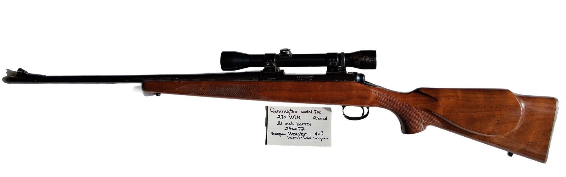 Barrel: Features a 21-inch hammer-forged barrel. Includes a Weaver 4X Variable Scope. The Scope has scratch marks on it. This is a right hand rifle.