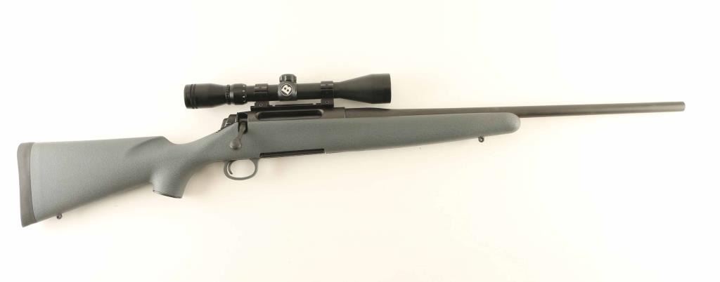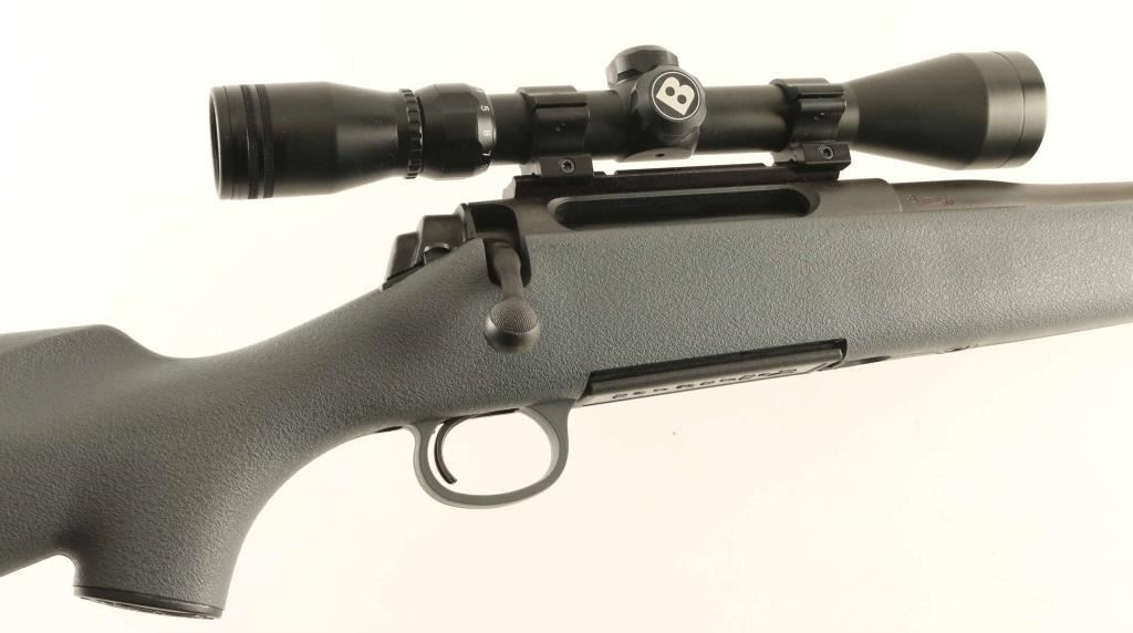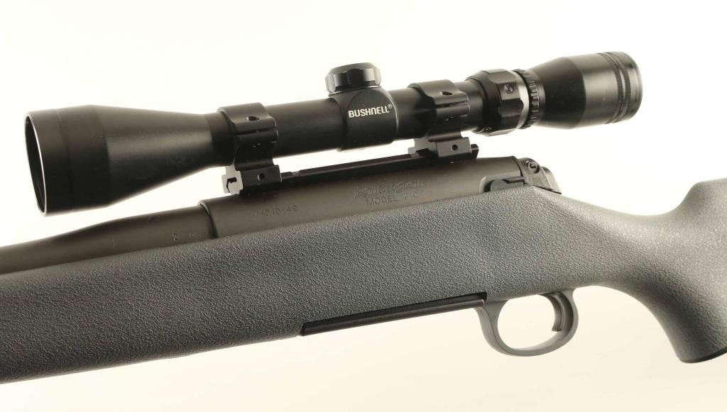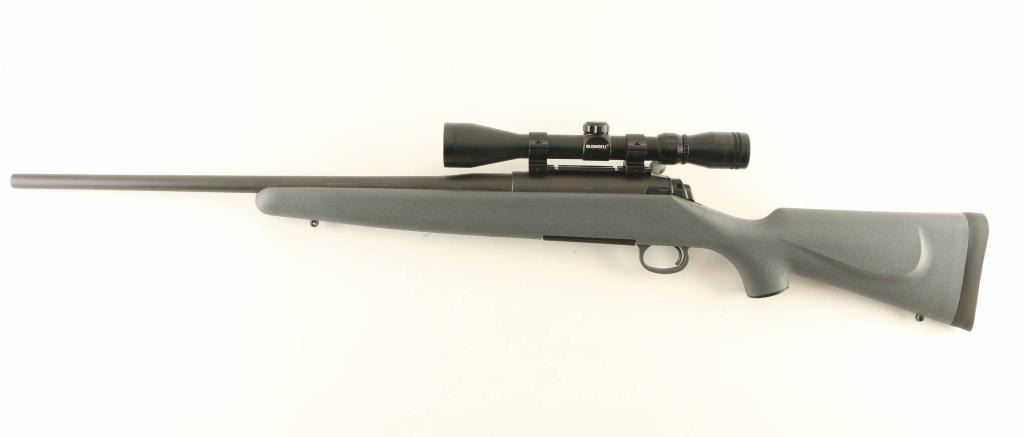 Bolt action rifle features matte blued finish, gray polymer stock, solid rubber butt pad, 22" barrel, weaver type one piece scope base, manual safety, detachable magazine, sling studs. Bore is very good condition. Overall appearance is like new with few signs of handling. Mounts a Bushnell 3-9x scope with duplex reticle, view thru scope is clear. Condition is NRA Excellent - Like New *** Modern Firearm ***