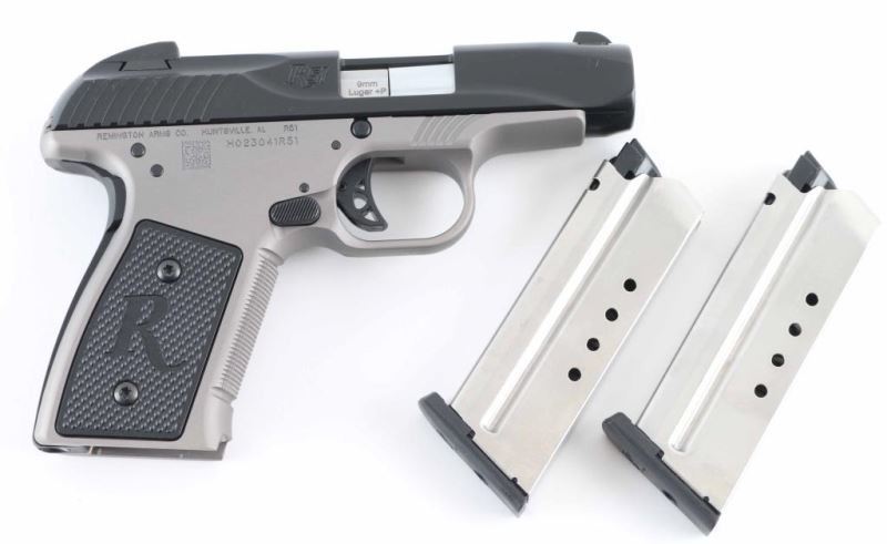 'Two Tone' Hesitation-locked single action semi-automatic compact pistol chambered in 9x19mm. Features a satin black oxide finished slide, 3.4” barrel, dovetailed three-dot sights, smooth polymer trigger, concealed hammer, grip safety, ambidextrous push button magazine release, factory 7 round magazine, smoke gray color anodized aluminum frame with knurled front strap and inset two-piece checkered black polymer grip panels. Includes the original factory two-piece cardboard box with lock and spare magazine. Pistol appears like new with few signs of handling. Action is in sound, the bore is pristine and the synthetic grips are fine. Condition is NRA Excellent - like new. *** Modern Firearm ***