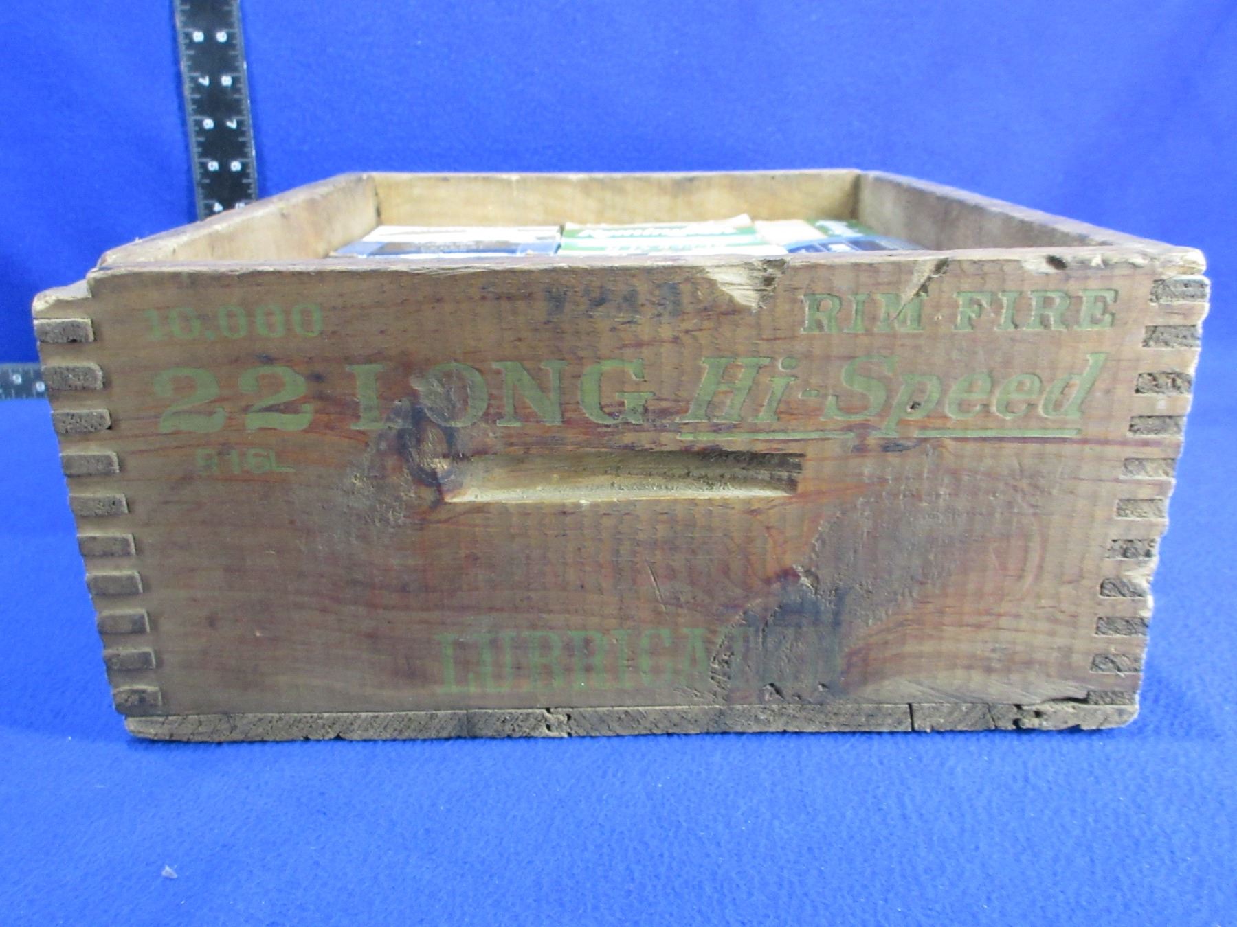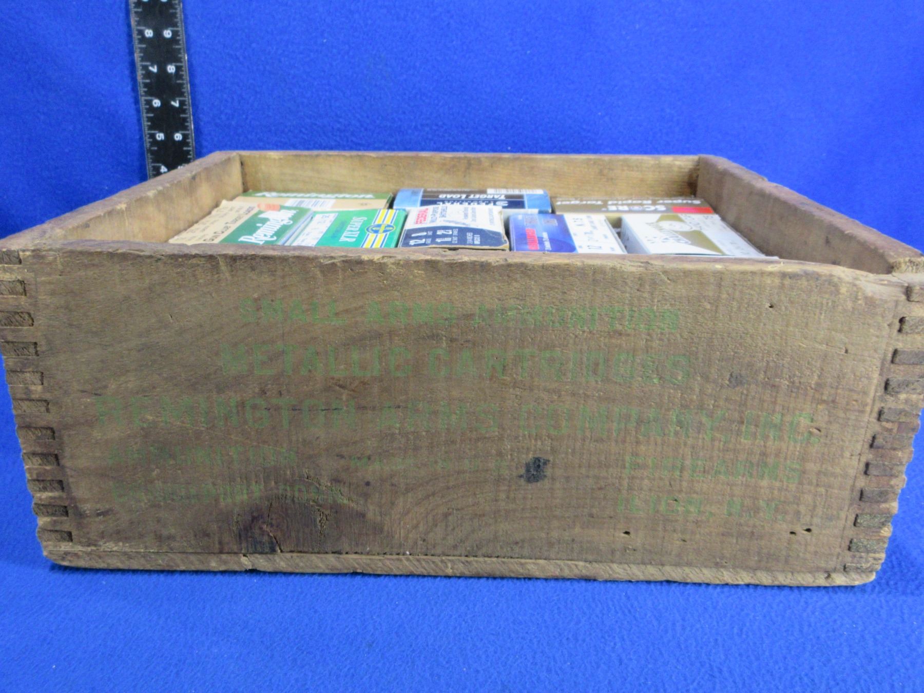 Remington Wood Ammo Box with 13 Empty Ammo Boxes - Wood Box is 14 1/4" x 12 1/4" x 5 3/4" High