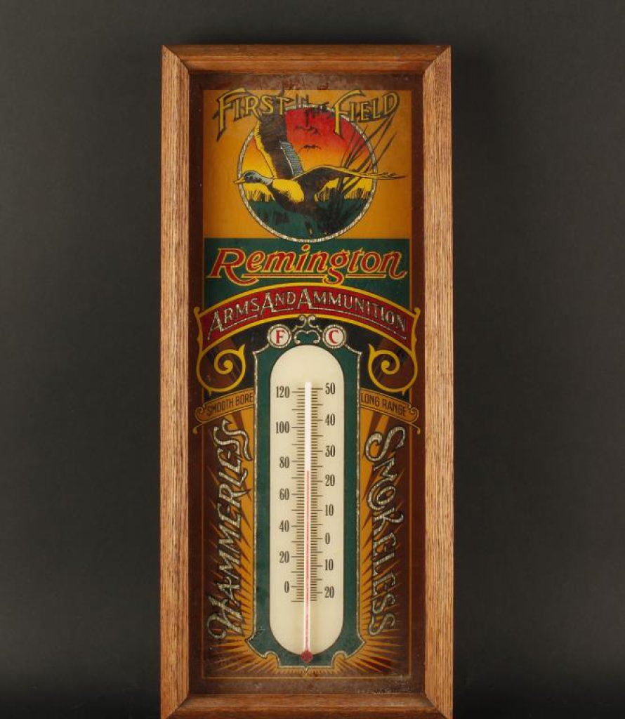 Remington advertising framed thermometer, approximately 19” x 8” overall. Est.: $75-$150.