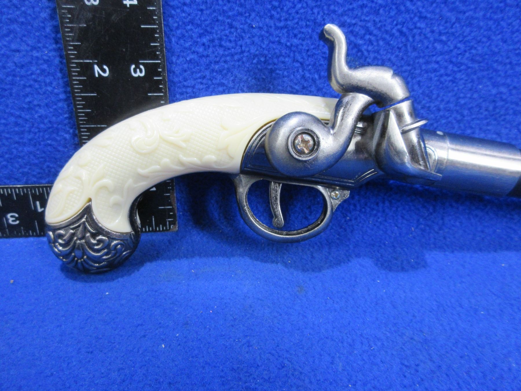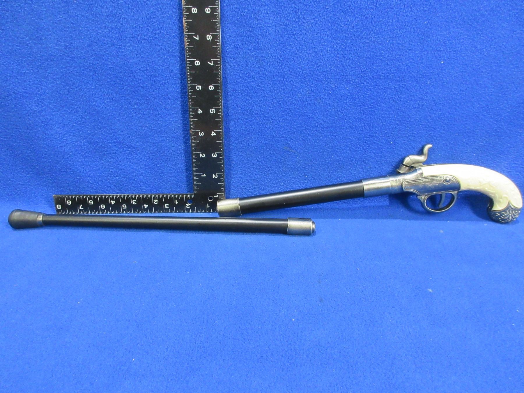 Replica Flintlock Style Pistol Walking Stick with Hidden Dagger - 27" Total Length, 6" Blade - Screw that holds bottom of cane together is broken