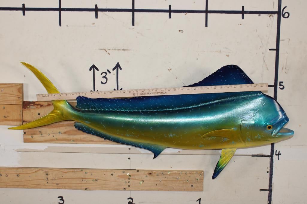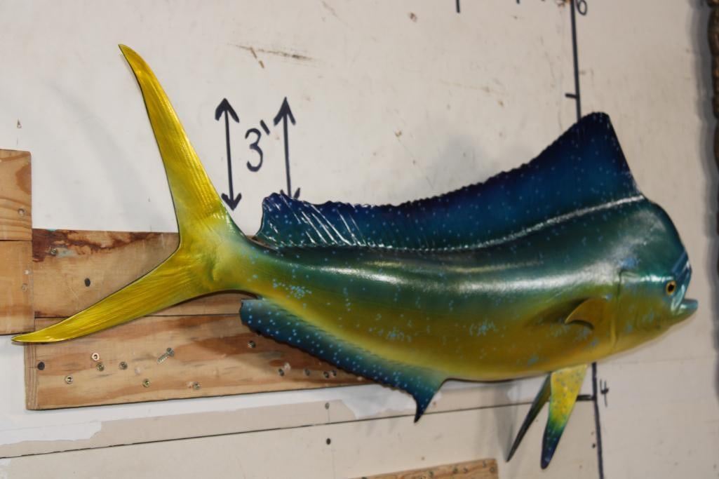 Very Nice reproduction MAHI MAHI Fish with vibrant colors. It measures 45.75" Long and is in Very Good Condition. TAXIDERMY FISH