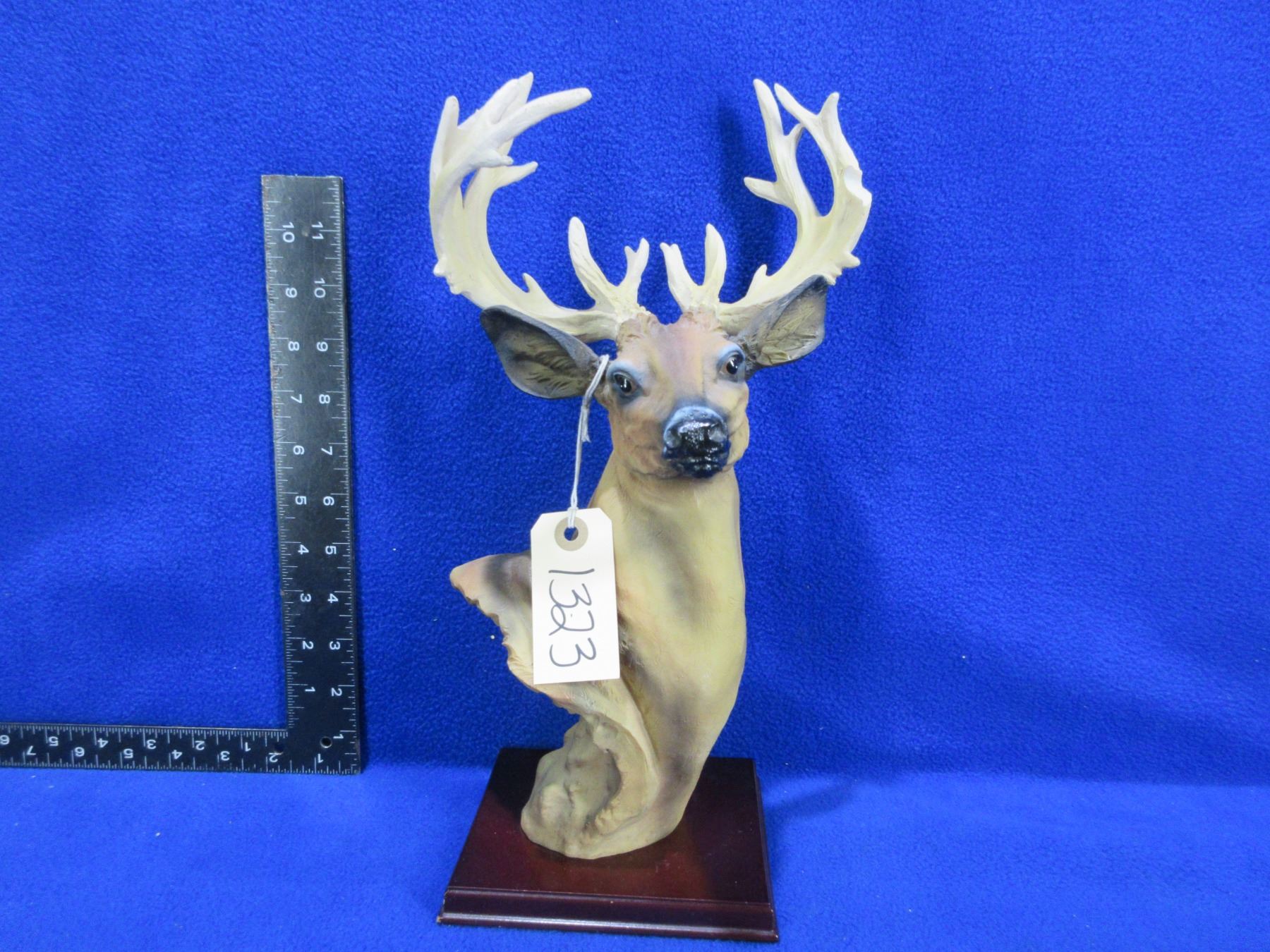 Resin Mule Deer Statue - Approx 14" H x 8" W x 6 1/2" D - One Antler Broken
