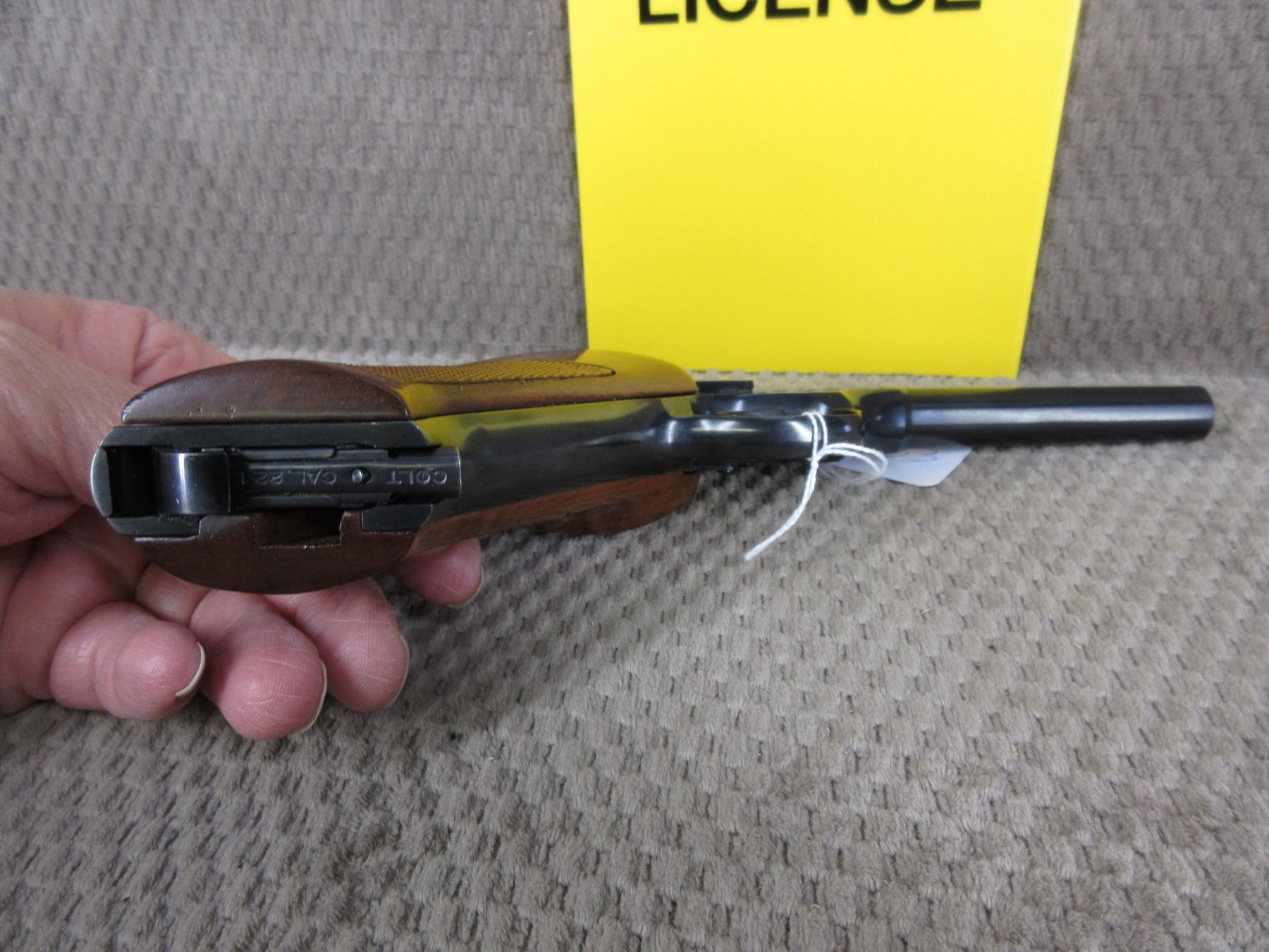 Restricted - Colt Woodsman Sport (second series) in 22 Long Rifle - This semi-auto pistol with magazine appears to be in very good working order. Barrel is 114MM, rifling very good, bluing very good, has fixed front sight, adjustable rear sight, wood grips are very good, made 1952-1953, Ser # 053796S