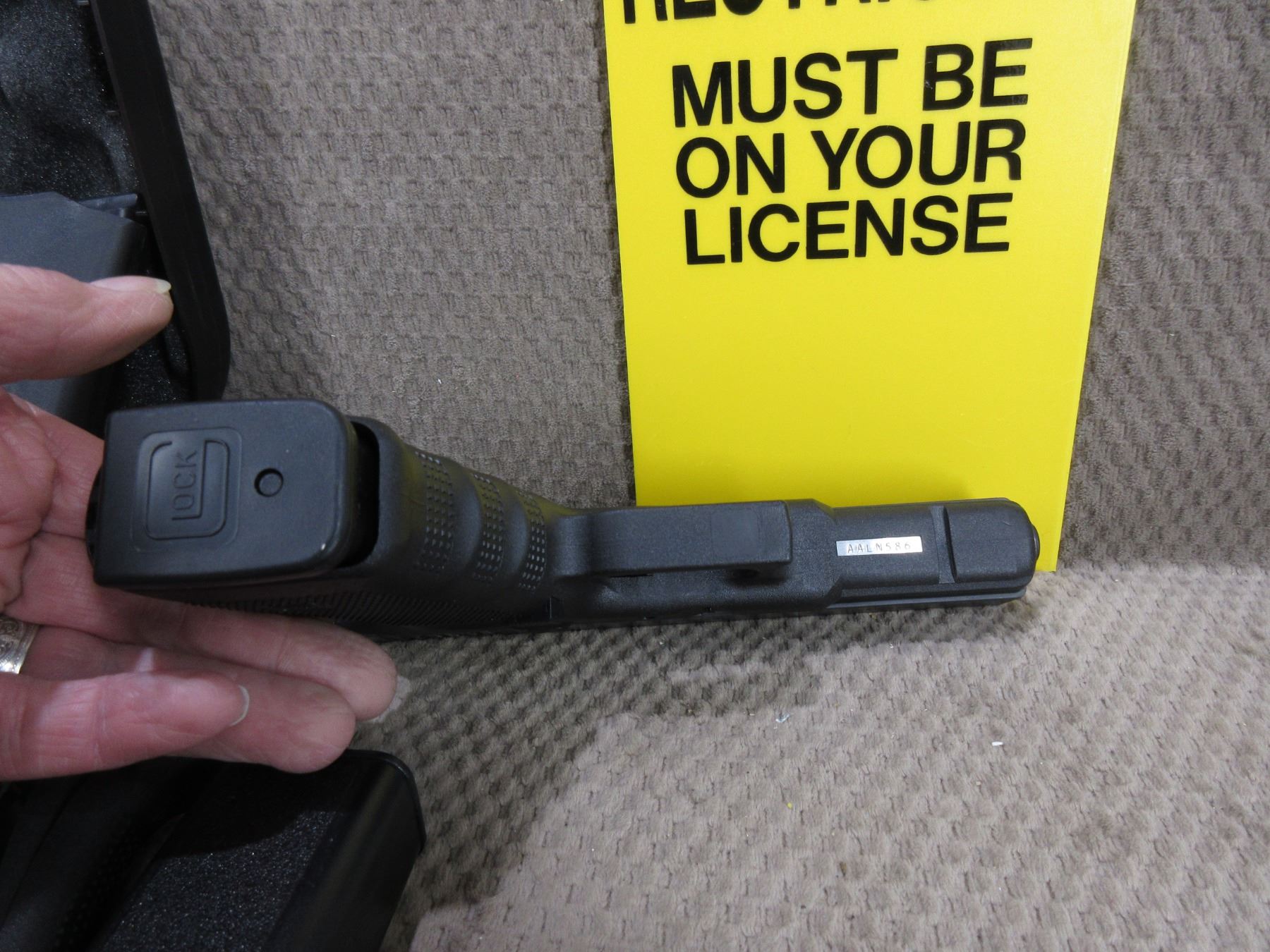 Restricted - Glock Model 21 Gen 4 in .45 Auto - This semi-auto pistol with magazine appears like new, has fired only about 40 rounds. Barrel is 117MM, has fixed front sight, adjustable rear sight, comes with 2 extra magazines, original case, grip parts, magazine loading tool, trigger lock, locking padlock for case, Ser # AALN586