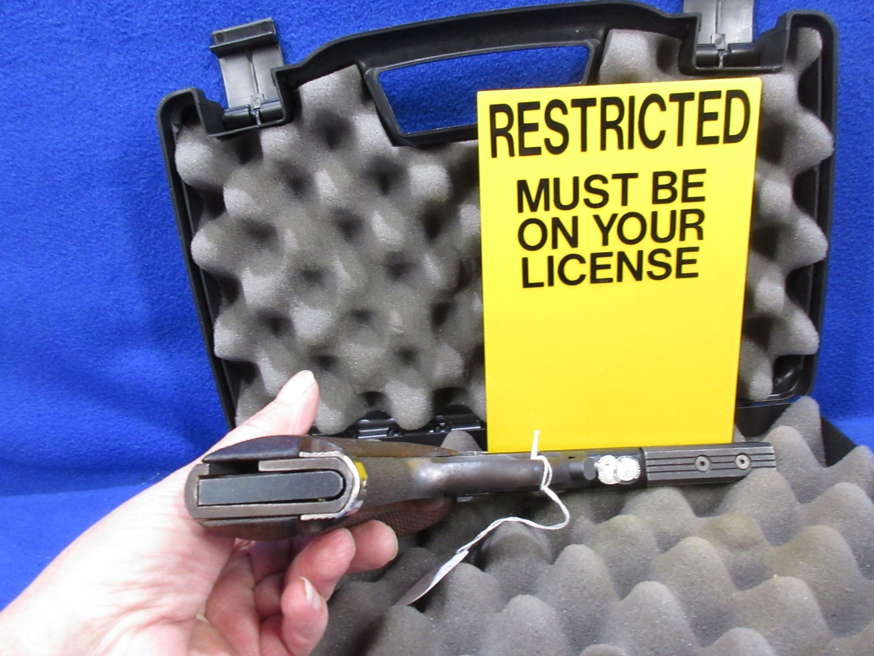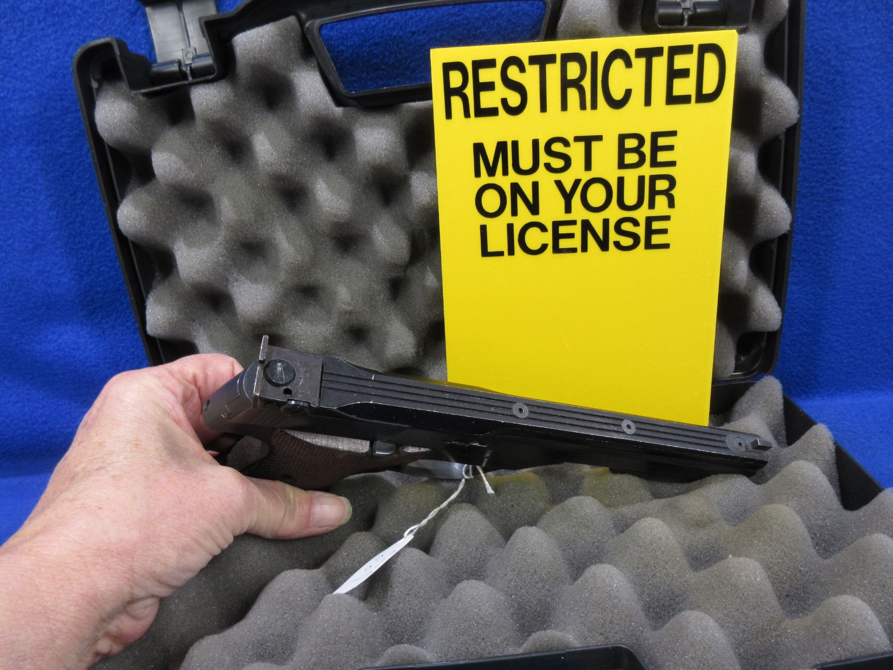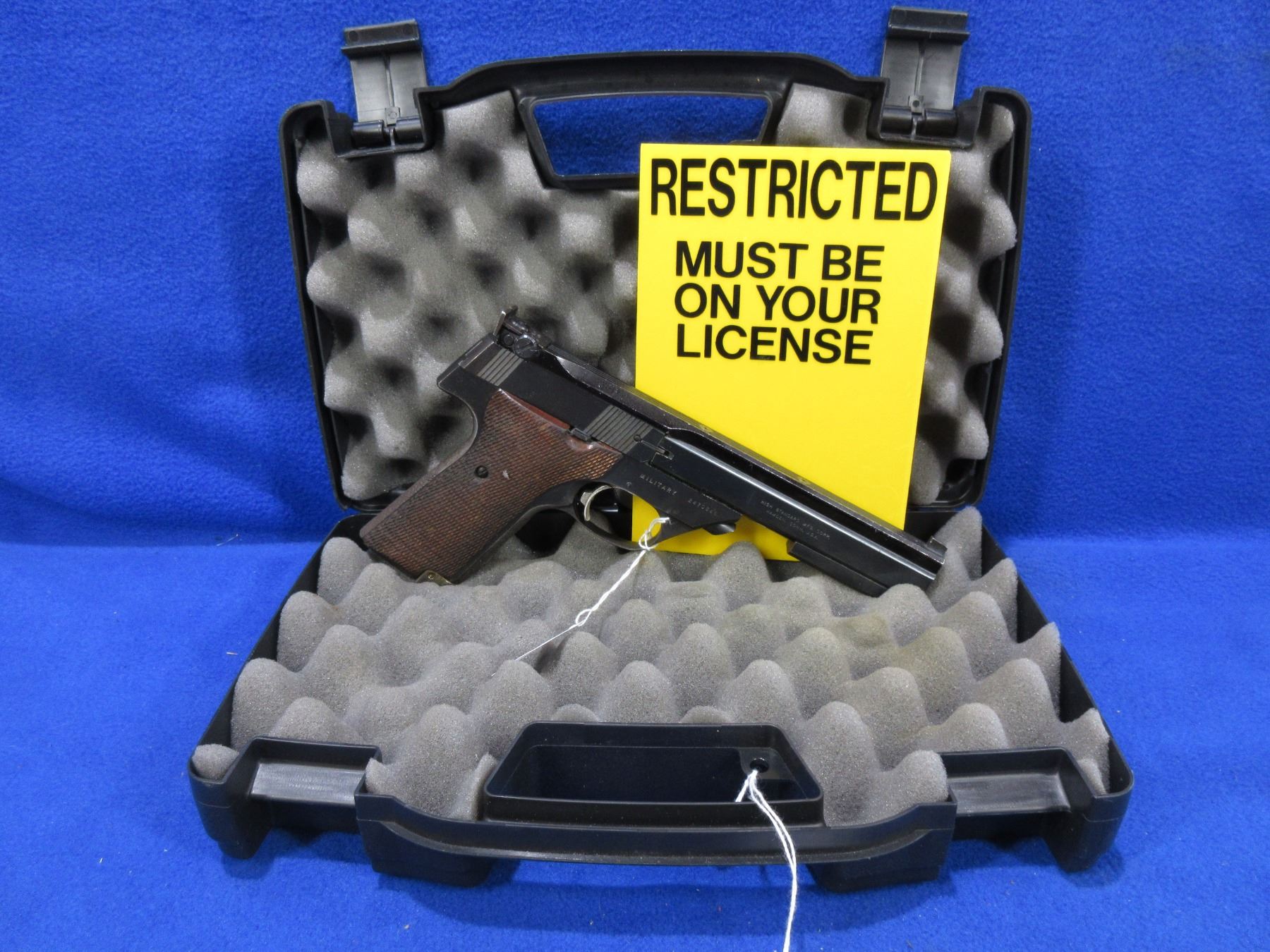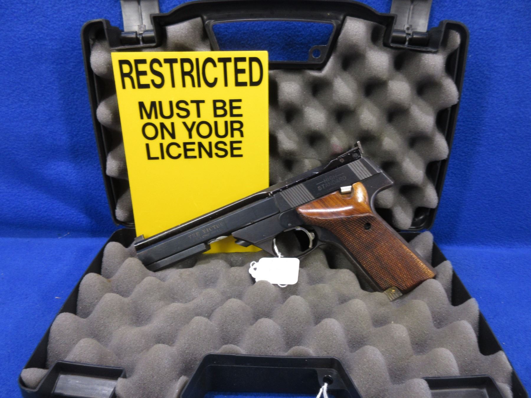 Restricted - High Standard The Victor in 22 LR - This semi-auto pistol with magazine appears to be in good to very good working order. Barrel is 140MM, rifling good to very good, bluing good, fixed front sight, adjustable rear sight, wood grips are good, comes with a case. Ser # 2470846