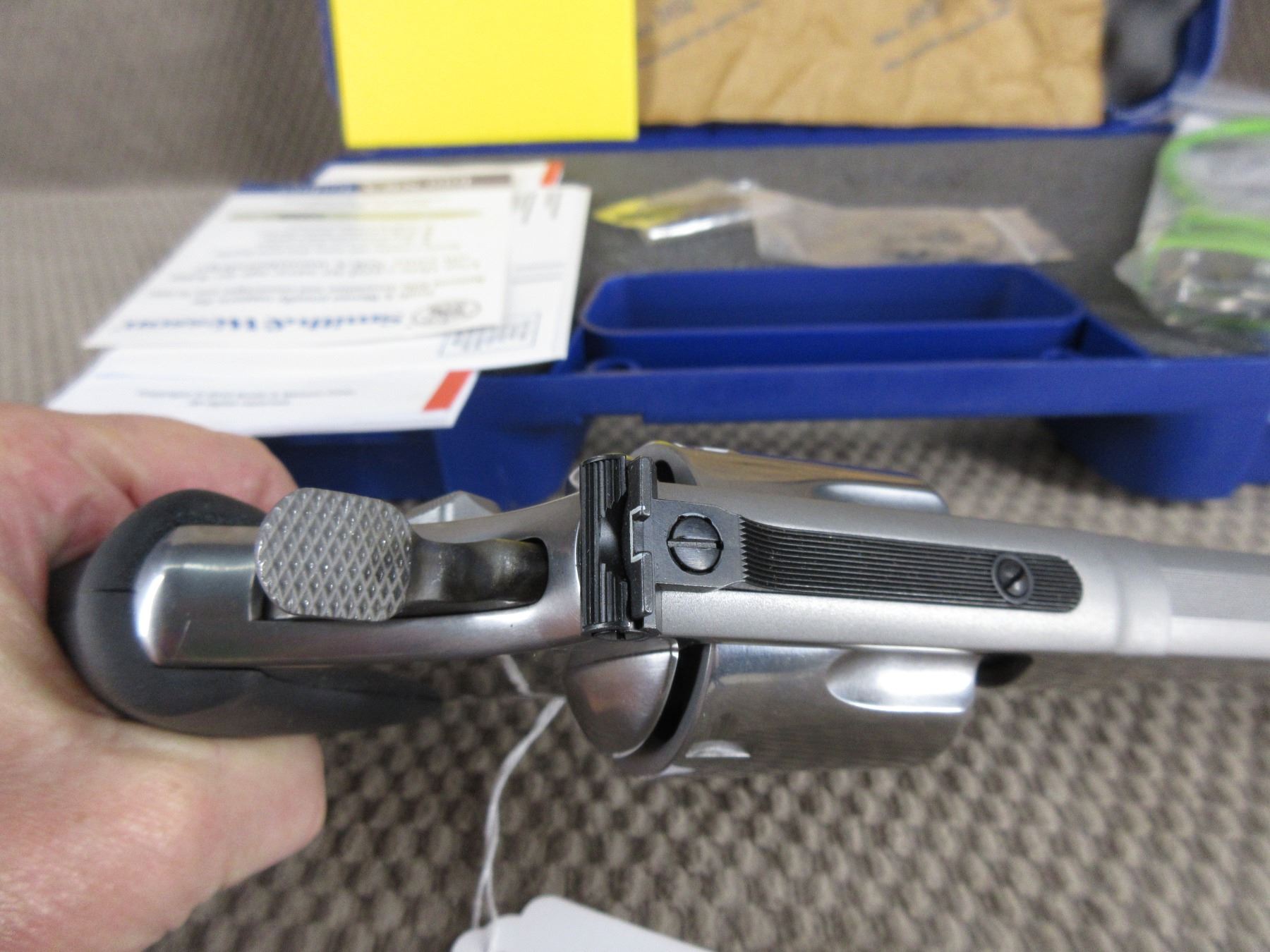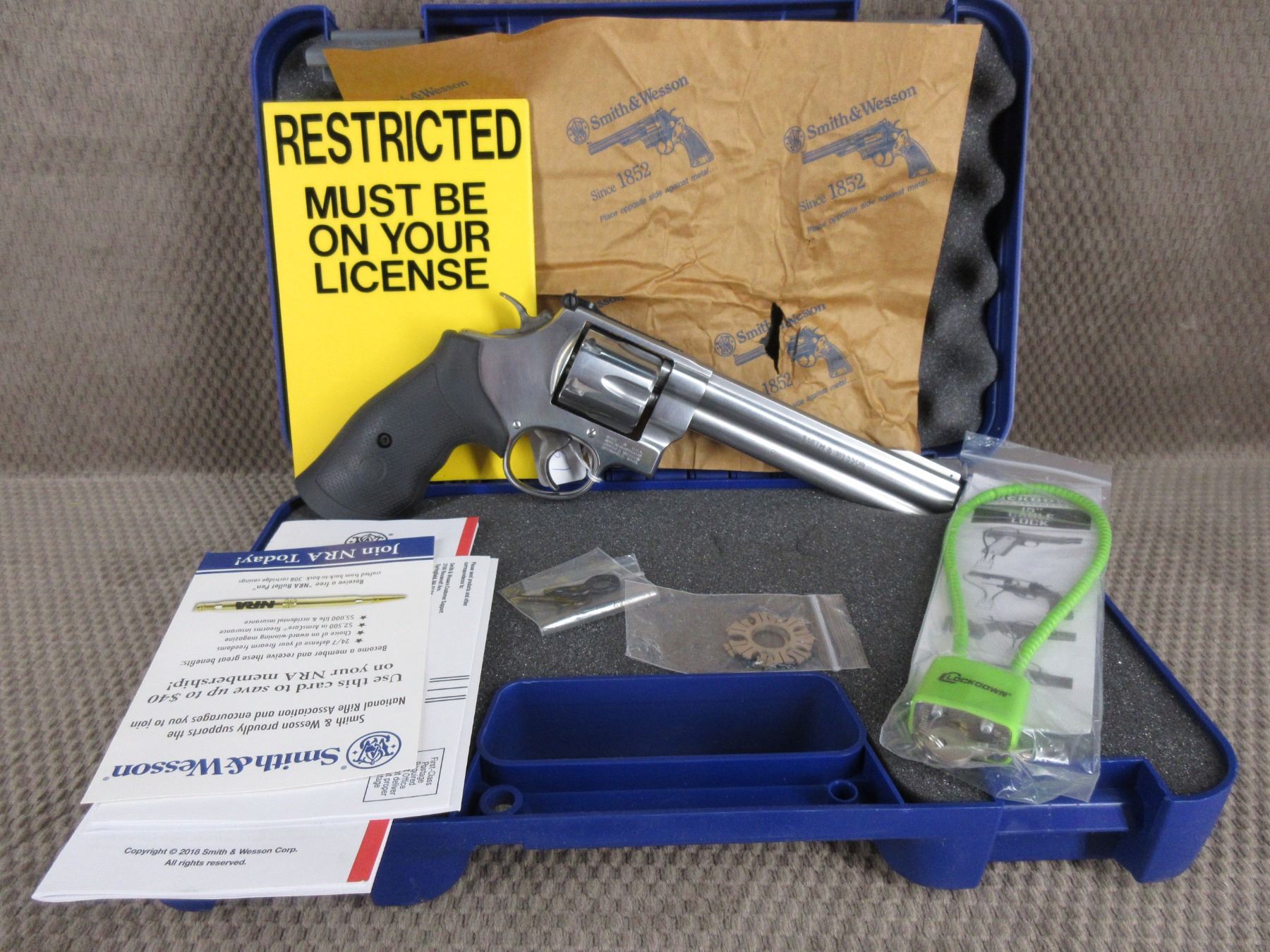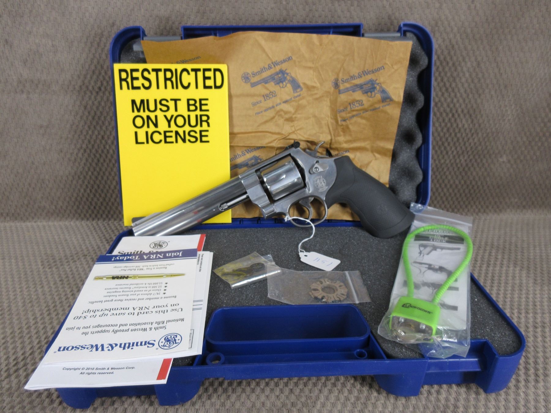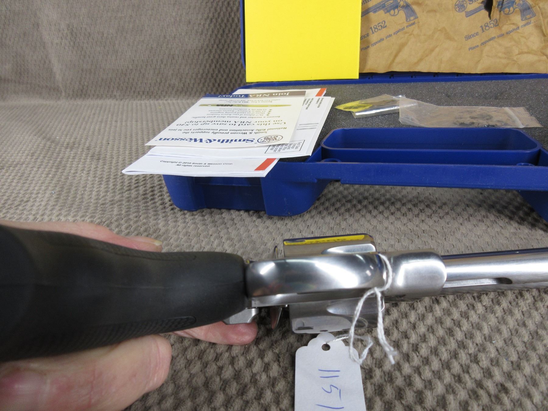 Restricted - Smith & Wesson Model 610-3 in 10MM - This 6 shot double action revolver appears to be in like new condition. Barrel is 165MM, rifling is excellent, stainless finish is excellent, has fixed front sight, adjustable rear sight, rubber grips are excellent, comes with 3 moon clips, original case and all the paper work, Ser # DMA1254