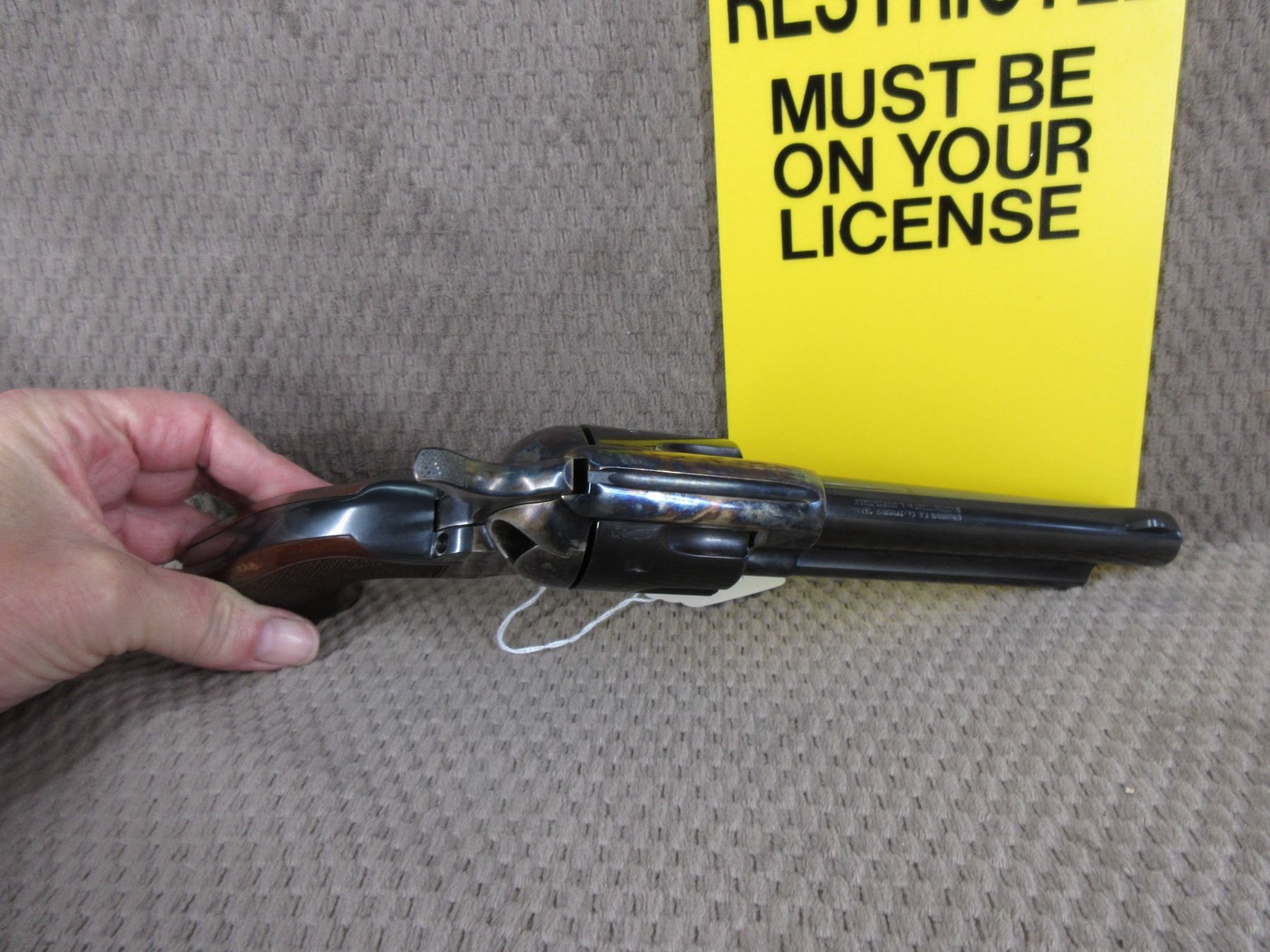 Restricted - Uberti Model Evil Roy in 357 Magnum - This single action, 6 shot revolver appears to be in very good working condition. Barrel is 140MM, rifling very good, bluing is very good, has fixed sights, wood grips are good to very good with some handling marks on back of right grip, Ser # ER3533