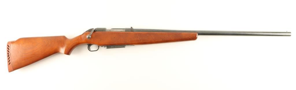 Magazine fed bolt action shotgun chambered for 2 3/4" 12 gauge shells. Features a blued finish, 28" full choke barrel, brass bead front sight, fixed rear sight, 2 round magazine, belt bolt handle, sliding safety switch, beveled trigger and one piece wood pistol grip shoulder stock with recoil pad. Shotgun exhibits moderate wear with scattered light surface rust on barrel and receiver. Action is tight, bore is bright and wood stock is very good with minimal blemishes. Condition is good. ***Modern Firearm***