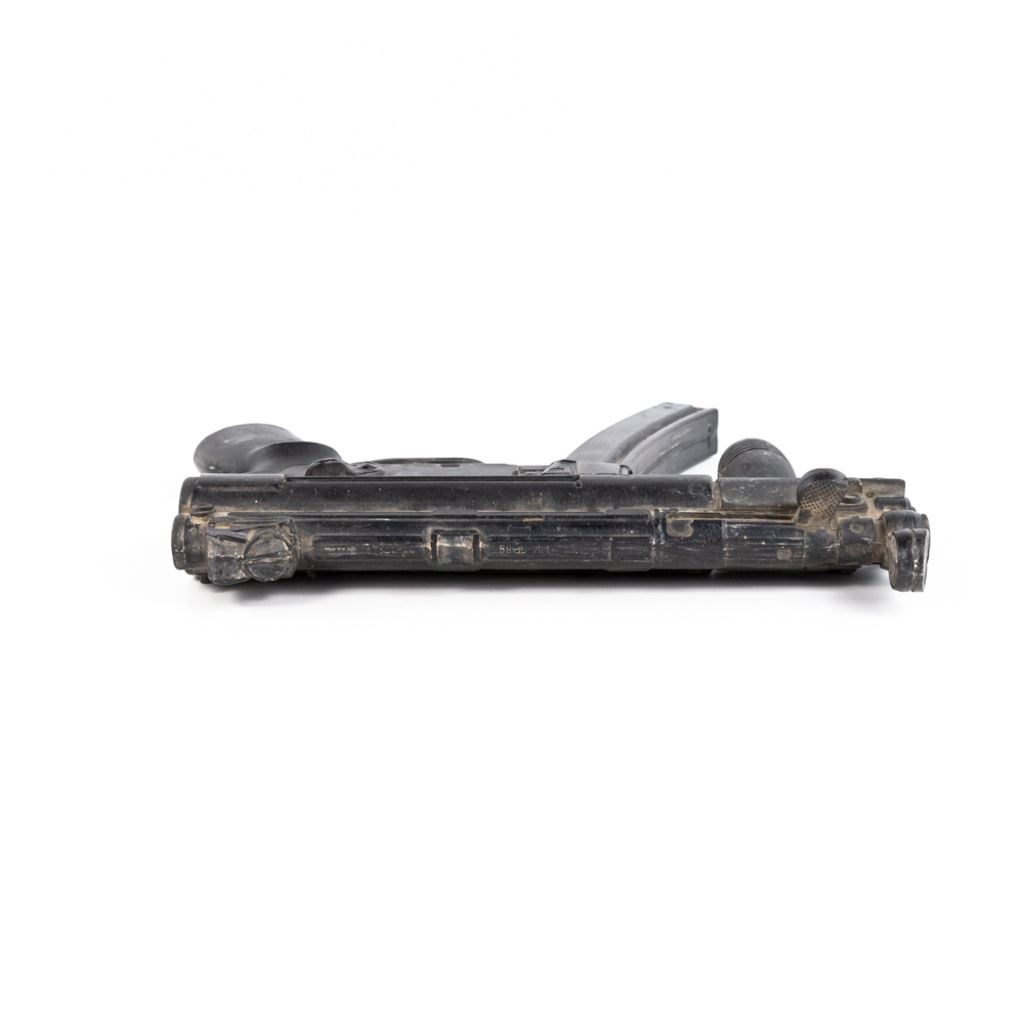 Replica dummy rubber weapon made by Rings. Used for police training and movie stunt use. This gun has been painted black and used for movie work, so it is worn and dinged. See Photos.