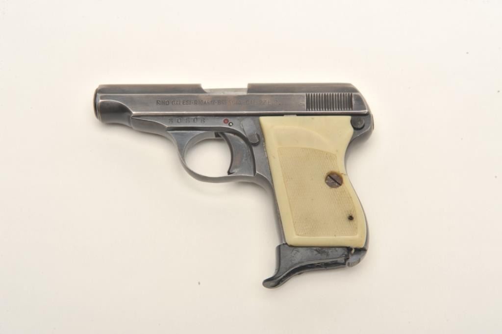 Rino Galesi-Rigarmia-Brescia semi-auto pistol, .22 lr caliber, serial #30506. The pistol is in good overall condition with a 3” barrel. The pistol retains the majority of its thinning blued finish with wear at themuzzle and high points. The checkered plastic grips are in good condition showing wear and flattening of the checkering. The bore is good, the action functions and the markings are legible. Est.: $100-$200.(Modern).