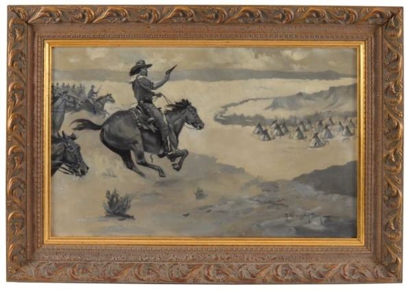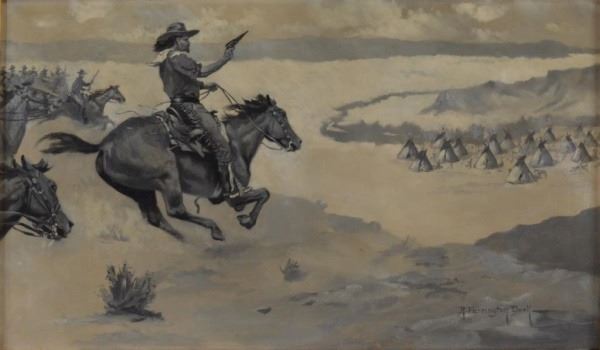 Robert Farrington Elwell (1874-1962) "Cavalry Attack" 18" x 29" Oil on canvas. Signed. Painted circa 1920. Excellent condition.